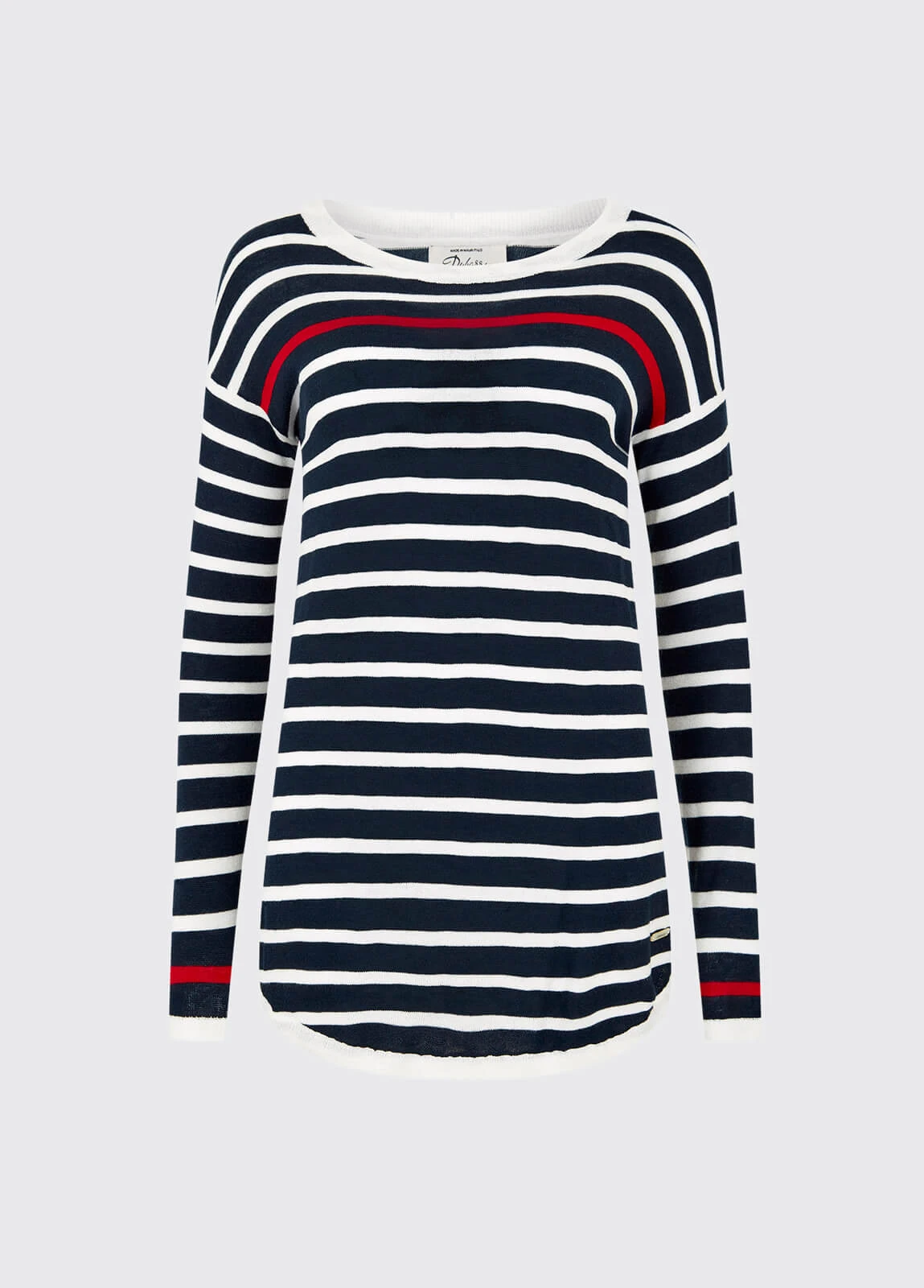 The incredibly soft Abbeyside sweater has a classic nautical feel but with an addition accent colour stripe and flattering scoop neck line. Three colour combinations and super-soft bamboo and cashmere mix mean this is an item you’ll turn to again and again.