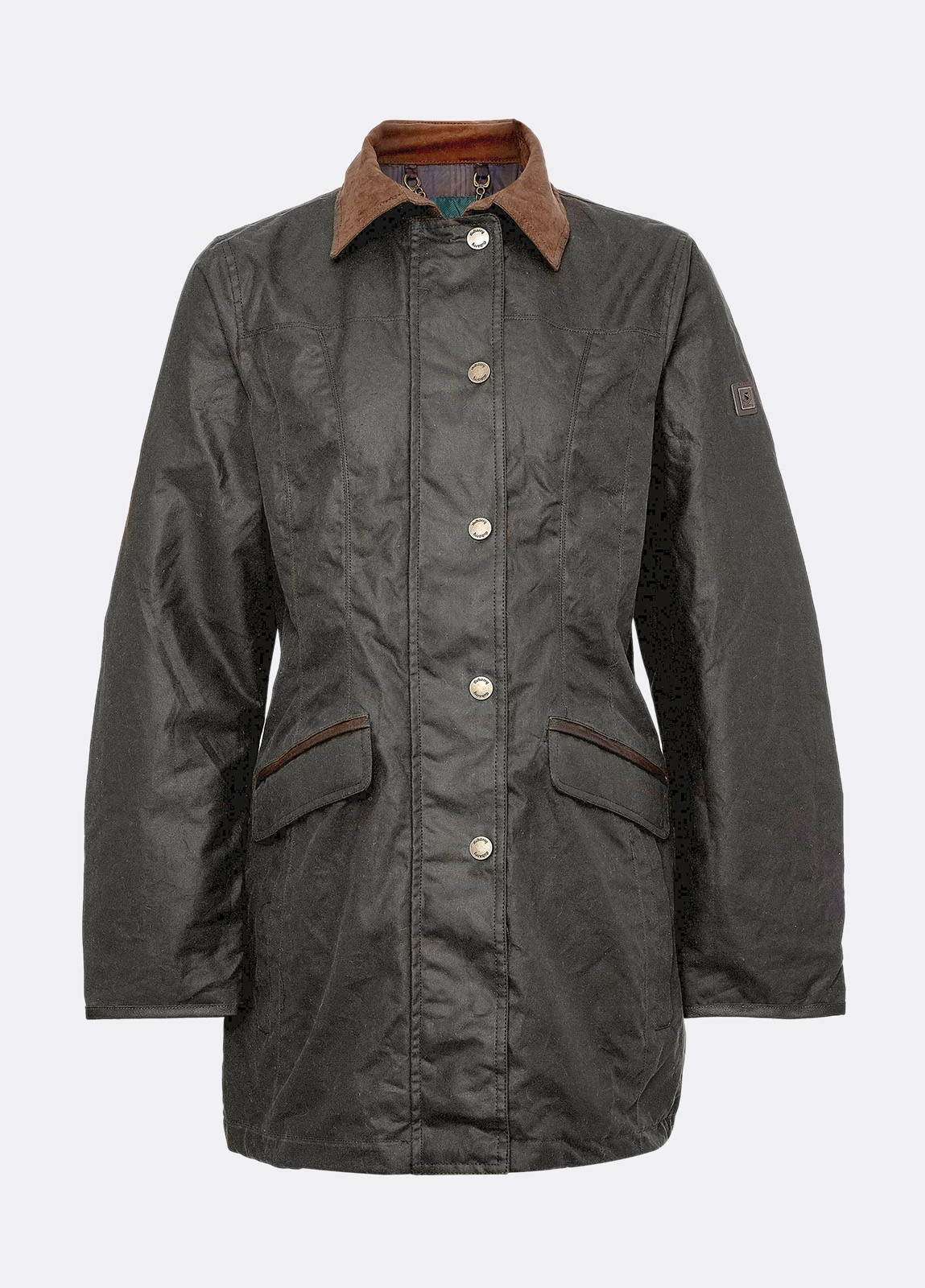 The Baltray is a waxed winter coat with PrimaLoft® filling that adds an lightweight layer of warmth. A leather trim, faux suede fold down collar and branded stud poppers add to the smart finish and a gently tailored shape gives a neat silhouette. A great coat for keeping warm about town or for waterproof walks in the country.
