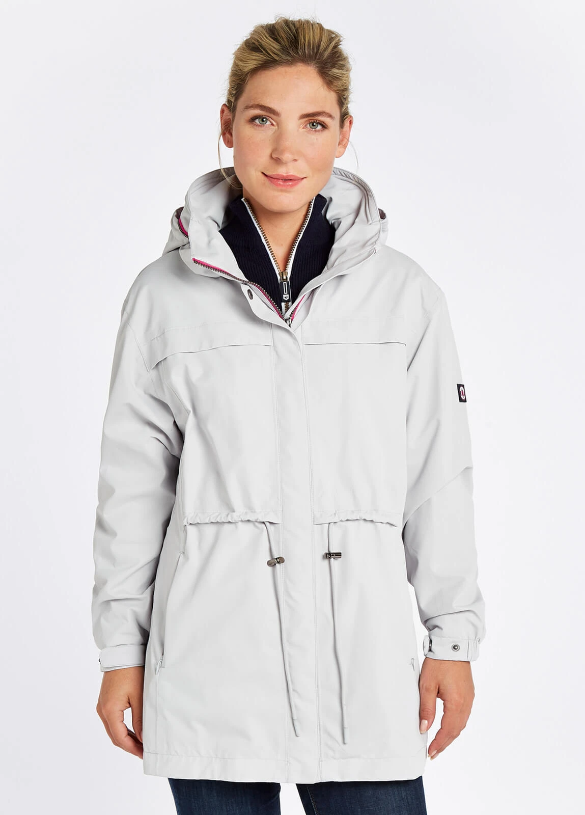 Contemporary styling with essential practicality, the Bangor lightweight rain jacket has it all. Taped seams and a waterproof finish help the 100% Polyester ripstop outer fabric keep the rain out while a modern shaped collar and long line design looks great teamed with jeans and Dubarry country boots and will turn heads in the wettest of weather.