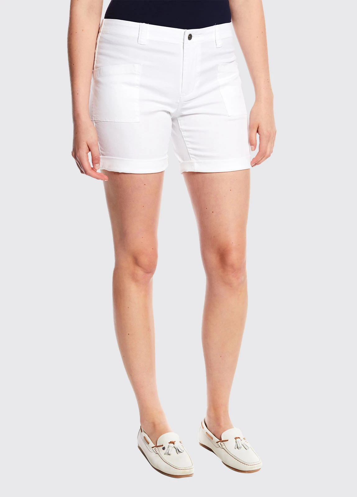 The Bellinter is a mid thigh length summer short that you’ll find yourself wearing again and again. Pull over a bikini and throw on a cover up for easy beach wear, or match with a Dubarry Dahlia printed top for a feminine country summer style. Large pockets are useful for wearing on long summer days and a finished hem allows them to be rolled to your favourite length.