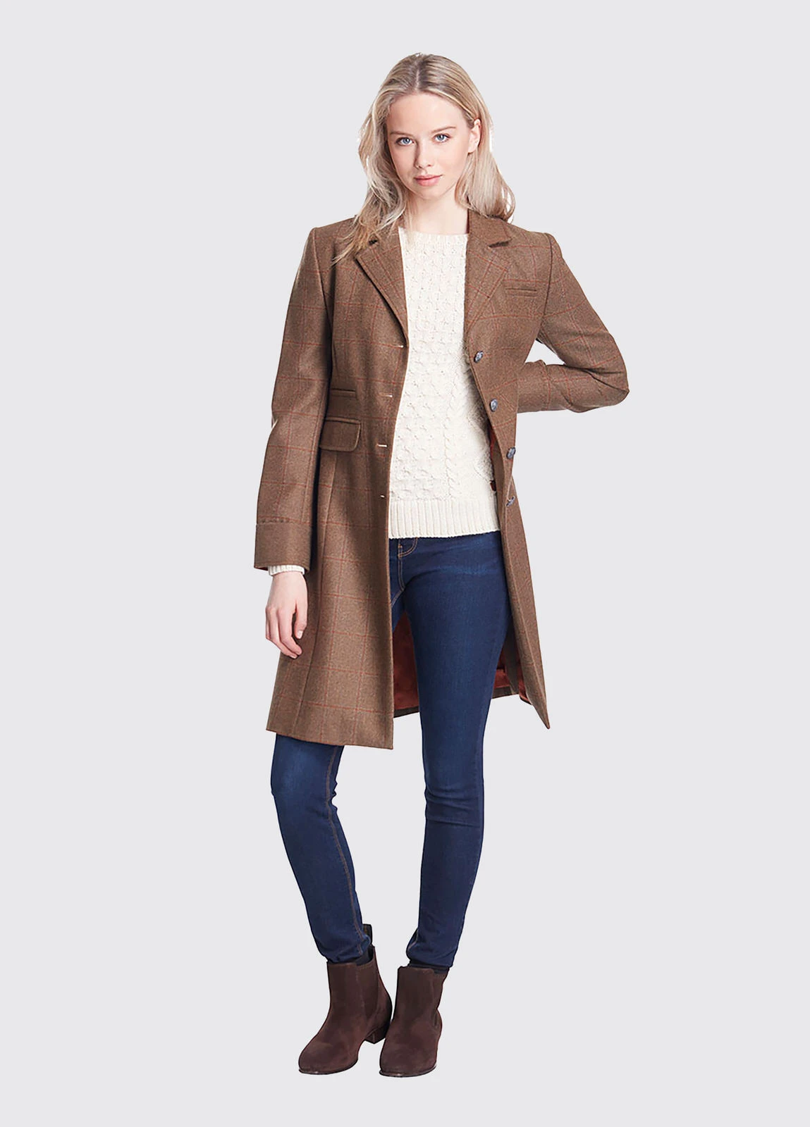 The Blackthorn is a Dubarry classic and staple for any wardrobe. The essence of country elegance, the three-quarter-length tailored jacket can be dressed up or down. Give an instant injection of sophistication to a jeans and Chelsea boot combination or complete a more formal look with real finesse. Made from 100% wool coated with Teflon to repel showers, marks and stains, the Blackthorn comes in a variety of coloured tweeds letting you to demonstrate your personal style and flare.