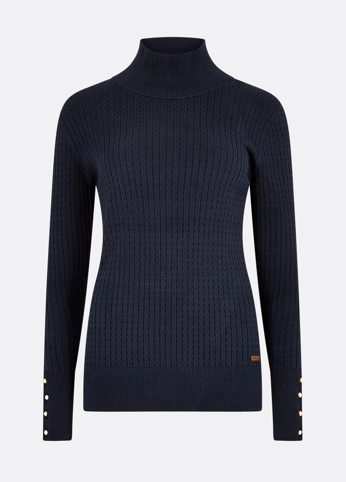 The Brennan is an elegant sweatshirt, that will be used time and again. Beautifully knitted in a delicate wishbone stitch it has pearlescent buttons on each cuff, making ideal workwear or adding a sophisticated touch to a day at the races. Dress up or dress down easily, with Dubarry Foxtail jeans or a Dubarry tweed Spruce or Bellflower skirt.
