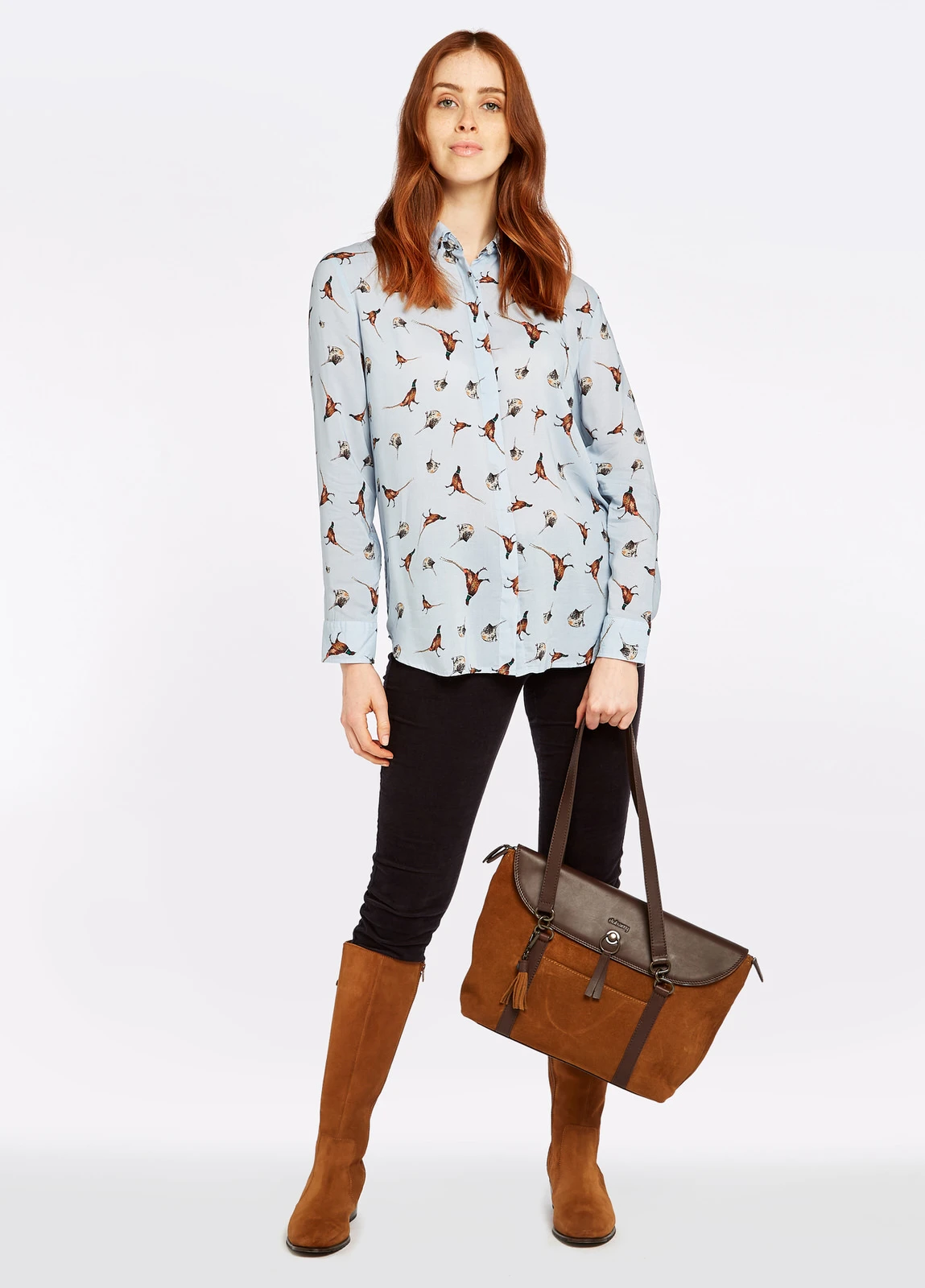 Go bold with Briarrose. An eye-catching custom pheasant print gives life to your winter outfit whether it’s on the gun bus on a shoot or running errands about town. Made from soft Rayon fabric, it has a fitted shape that hangs beautifully and layers comfortably. A perfect match with moleskin Foxtail jeans and leather country boots or Dubarry Chelsea boots. – Dubarry custom designed pheasant print shirt.