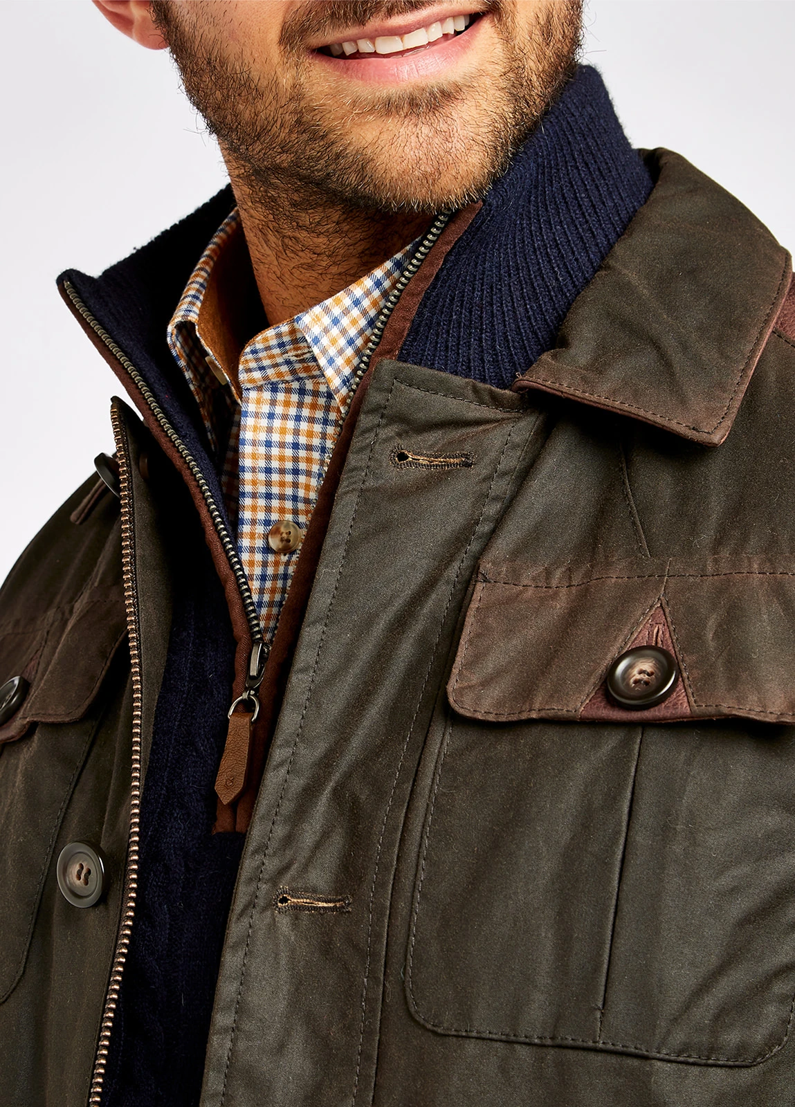 A great town meets country jacket, the Broadford has a relaxed feel, but with smart leather lined detailing, it can be dressed up or down. Symmetrical patch pockets give a vintage feel, while the latest in Dubarry design offers warm, water repellent wear, with waxed fabric filled with PrimaLoft® and side entry handwarmer pockets.