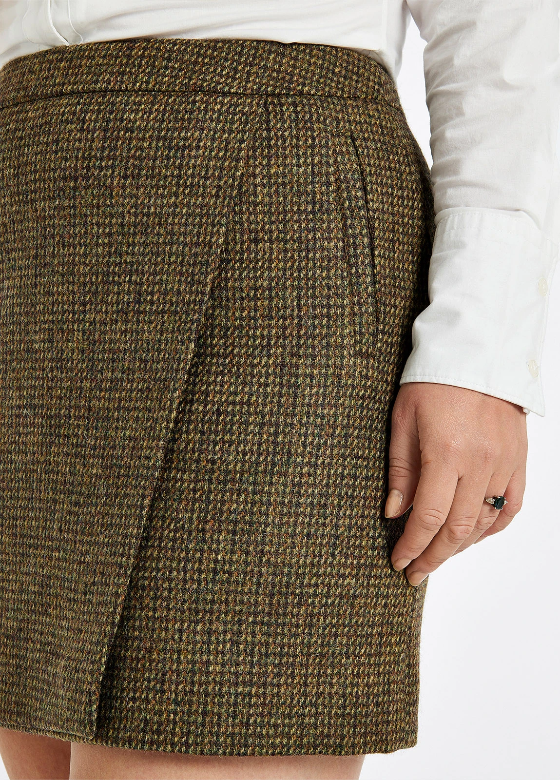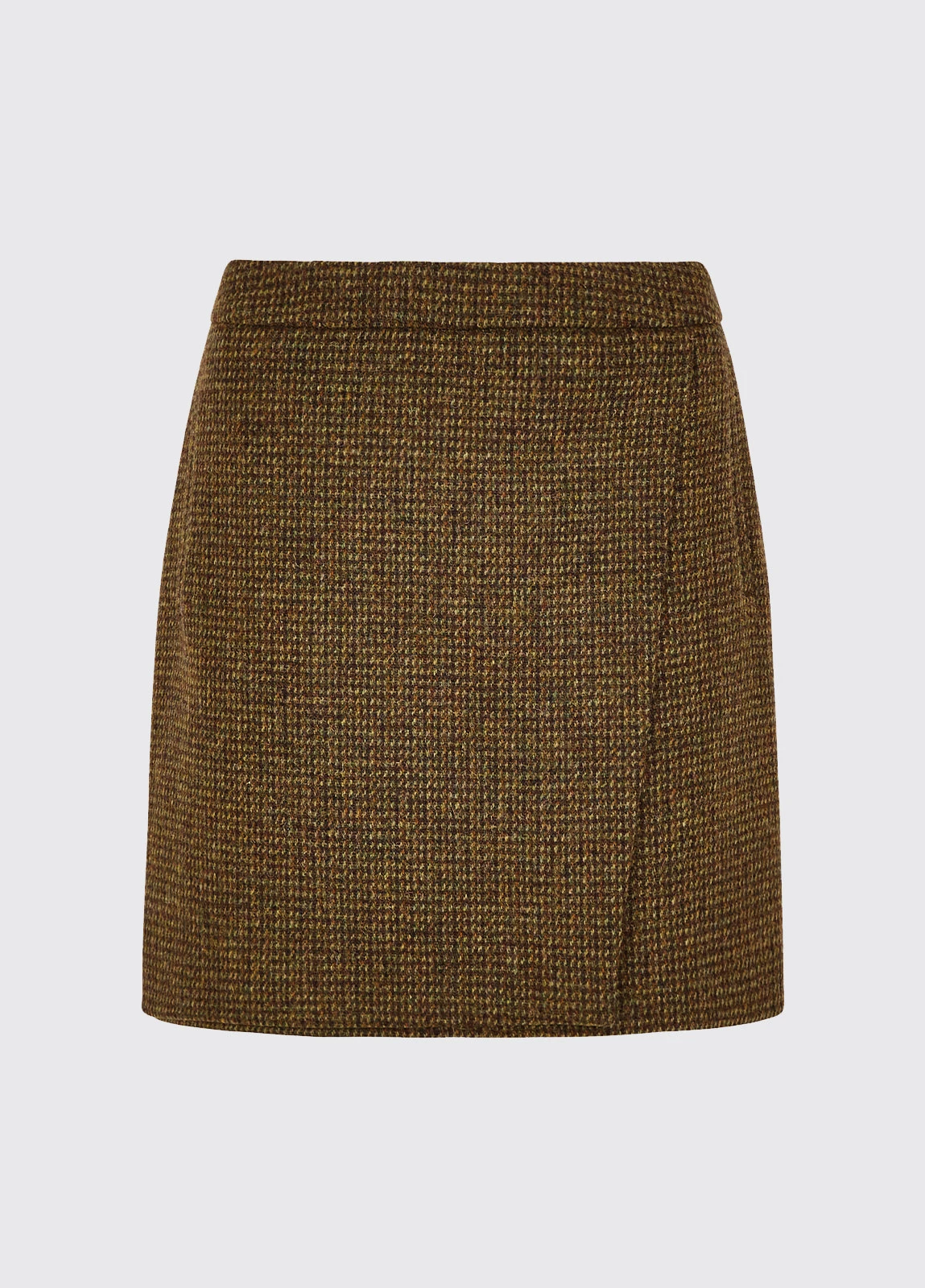 Our Buckthorn tweed skirt has the design appeal of a wrap-around, with the practicality of a pencil skirt. Subtly fixed at the front of the skirt with a neat, concealed zip at the back, removing the fastening fiddle and the risk from blustery weather! Teflon® coating gives the pure wool fabric extra protection and the tweed coordinates perfectly with Dubarry Country boots, so if you’re to be found on a peg, cheering the finish line or dashing to work, this is the ideal winter skirt for you