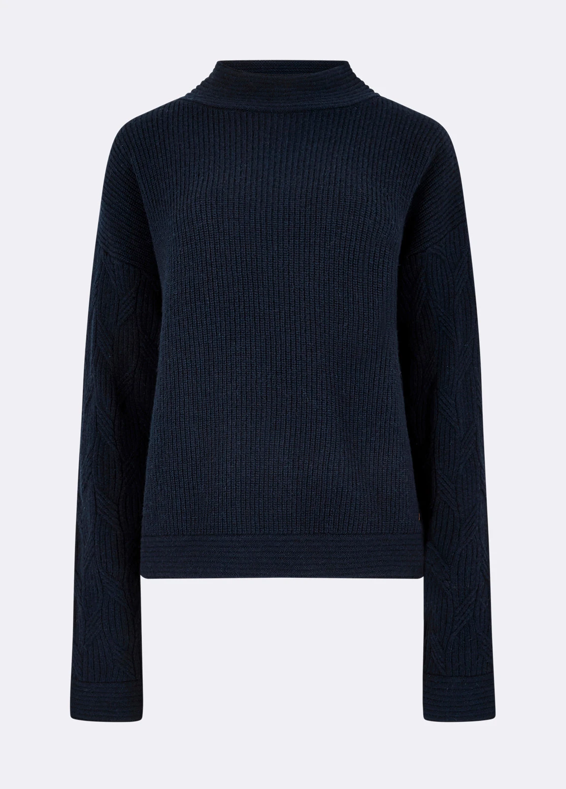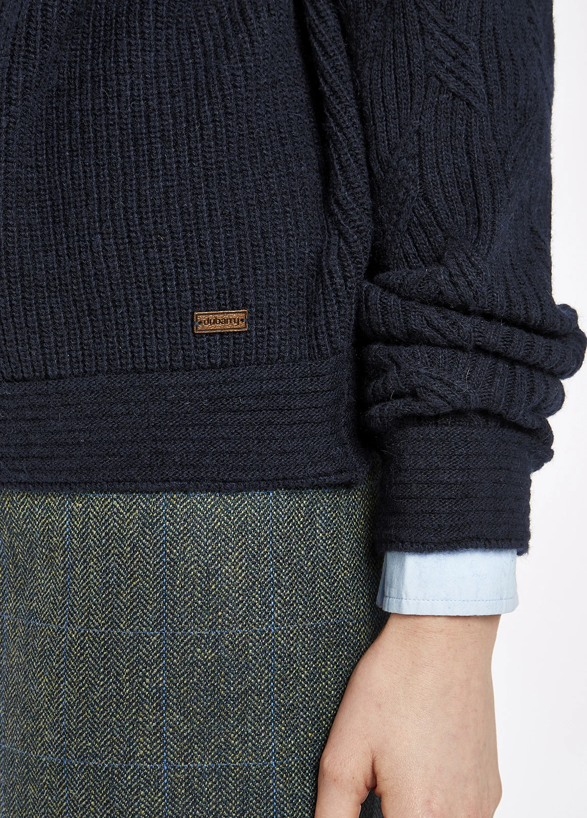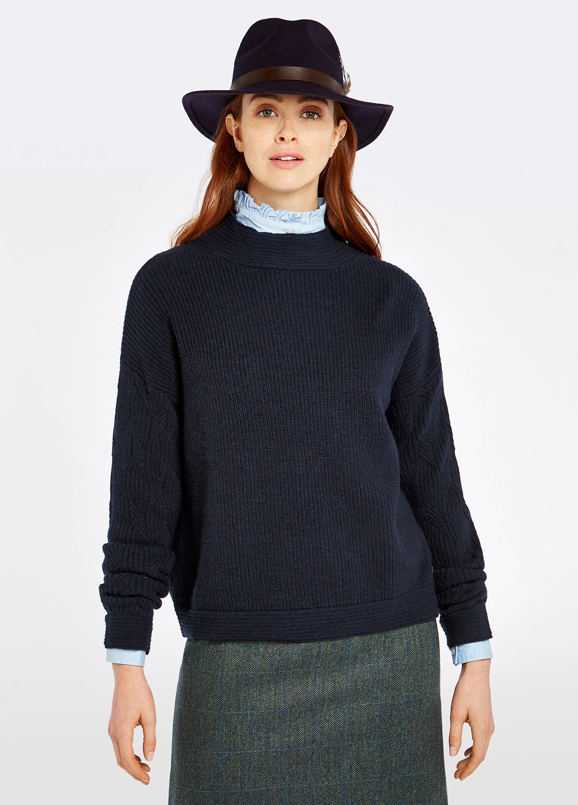 Our Byrne sweater is a fantastic weekend favourite. The mixed wool blend is soft to the touch, great for snuggling down on a sofa or layering under a Dubarry gilet on a crisp autumnal walk, while the combination of fishermans rib stitch and cable knitted sleeves will turn heads wherever your weekend takes you.
