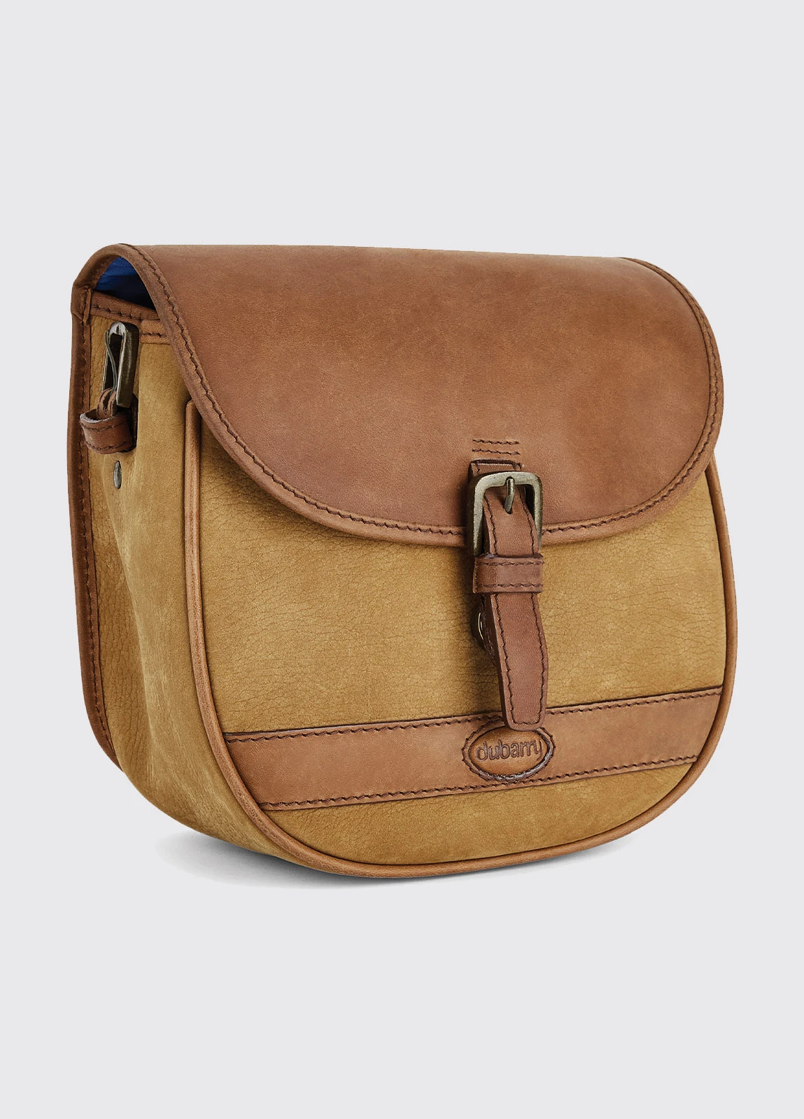 The Clara saddle bag comes both in a full leather style and fabric mix too, both of which team brilliantly with Dubarry tweeds for an eye-catching country look. It has an internal zip pocket for security, full lining and it closes with a simple leather flap and studded buckle over the top. Just the right size for your essentials – purse, phone, keys and quite possibly your race card too.