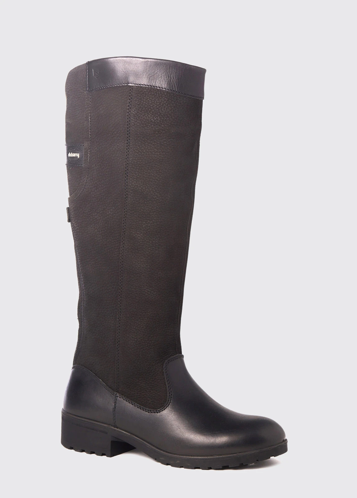 With an equestrian-inspired design, the Dubarry Clare leather country boot delivers excellent performance with the addition of extra protection on the inside leg. Warm, waterproof and breathable, with shock absorbing soles, the GORE-TEX lined boots have a flattering cut, styled low at the back of the knee, and elasticated heel panel at the rear for an easy fit. Hardy enough to be put to work on the stable yard yet smart enough to take into town.