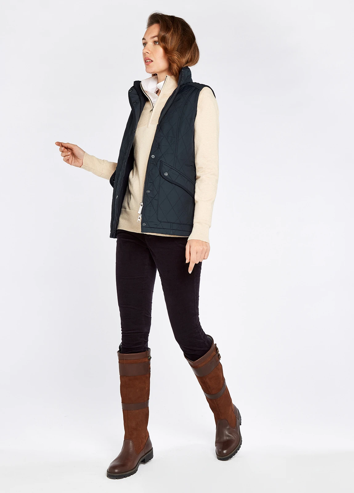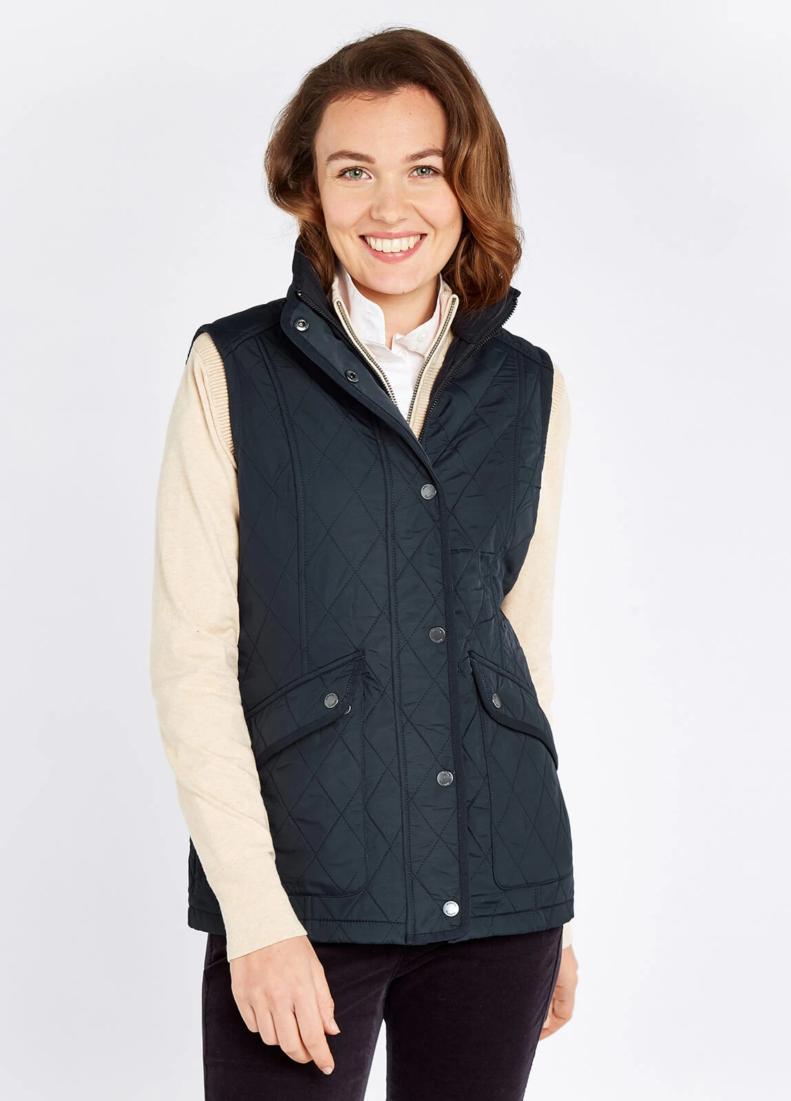 Inspired by traditional equestrian style, made with expert, modern materials, the Clonmel is a cosy, streamlined gilet. Water repellent, warmly quilted and fleece lined yet maintaining an elegant silhouette, it also as snap fasten pockets, perfect for holding essentials whether your dashing to the shops or hacking around the countryside.