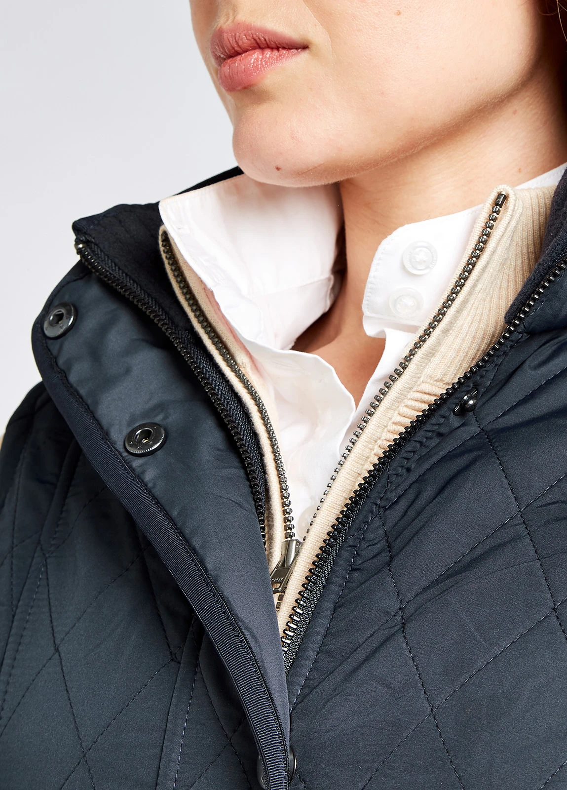 - Covered, two-way centre front zip