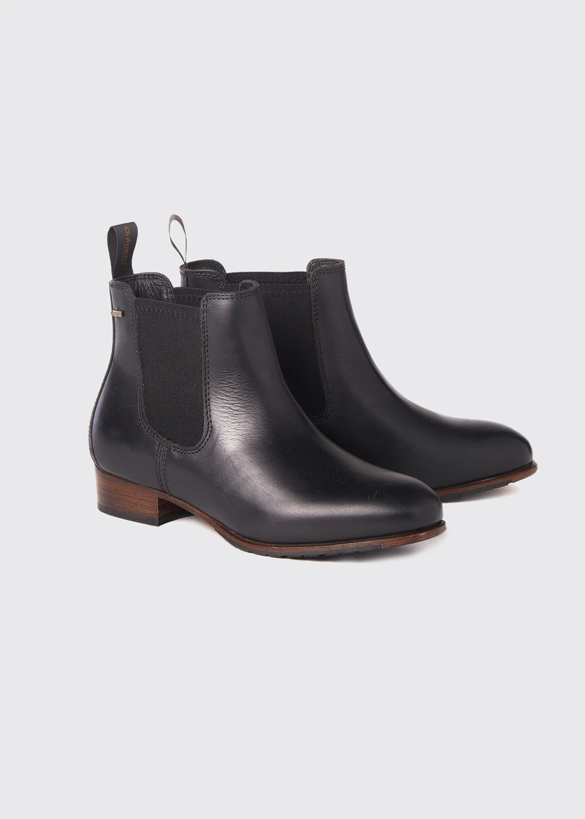 The Dubarry Cork Chelsea boot for women is a slender ankle boot available in suede and leather. Great city boots that also coordinate with your country wardrobe, they combine breathable GORE-TEX technology and a water resistant DryFast-DrySoft™ finish to ensure your feet are warm and dry. Leather and rubber soles with a leather stacked heel give an elegant appearance and matching elasticated paneled sides make for a secure fit. Team with Dubarry fitted jeans and a weatherproof jacket.