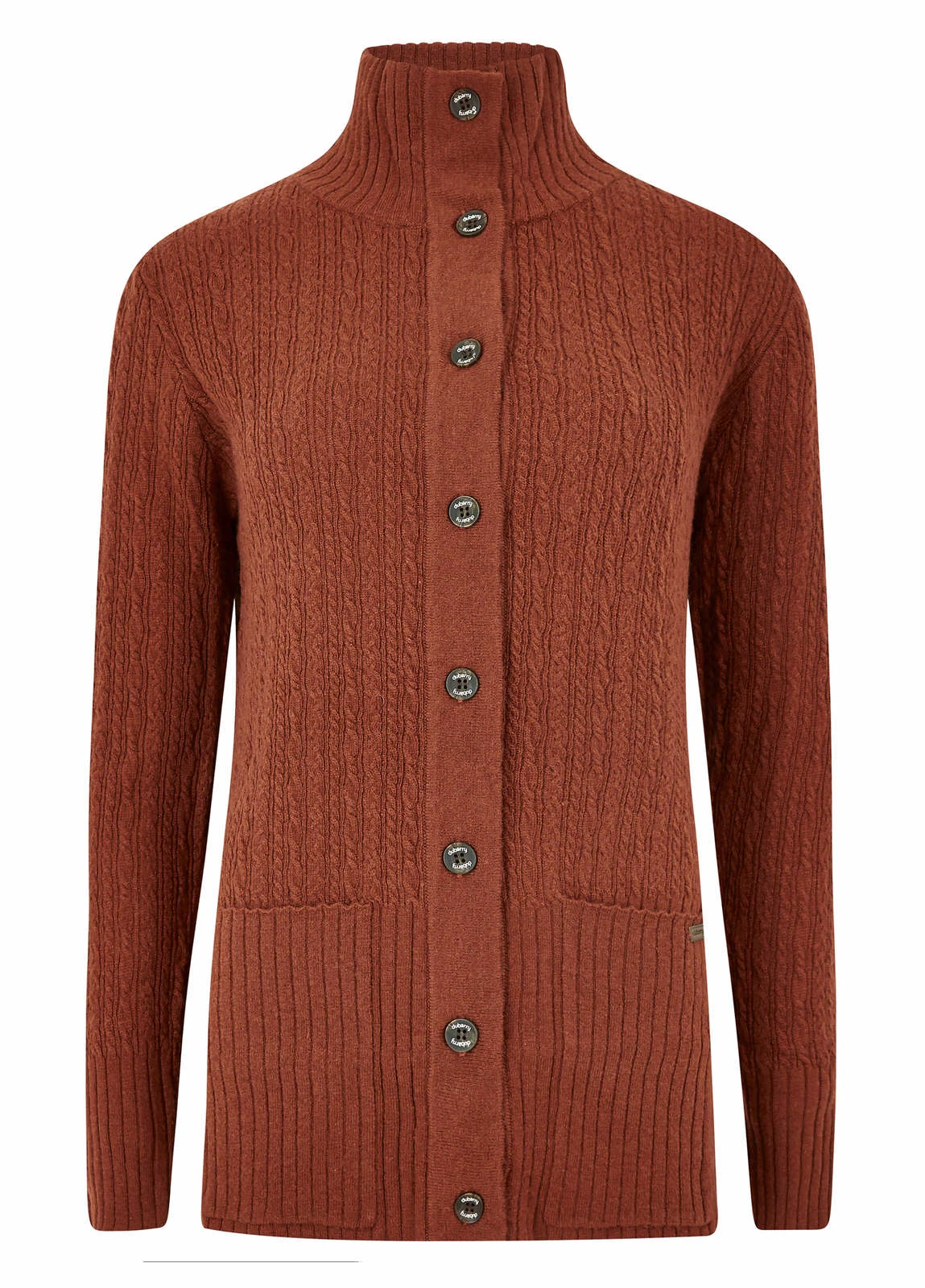 For a comfy knit without bulk, meet the Crofton cardigan. A wool, nylon and Rayon blend gives a warm, soft feel and hangs beautifully and resists pilling. The front buttons fasten up to the the full stand up collar, while two front pockets are ideal for keeping hands warm and wrapping the unfastened cardigan around you for some cosy downtime. – Button-front cardigan with stand collar.
