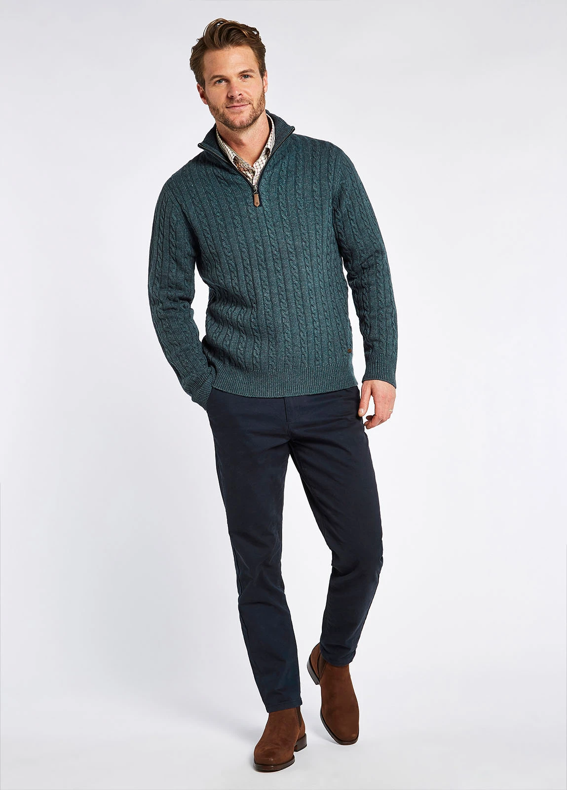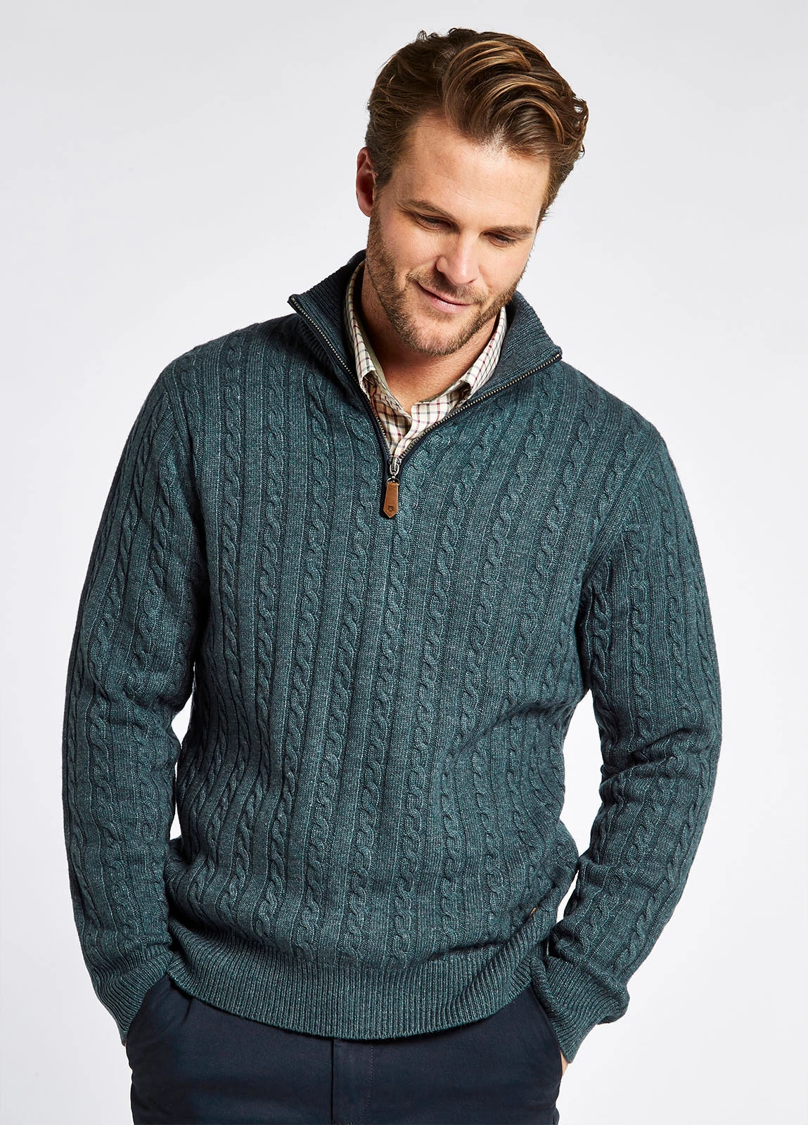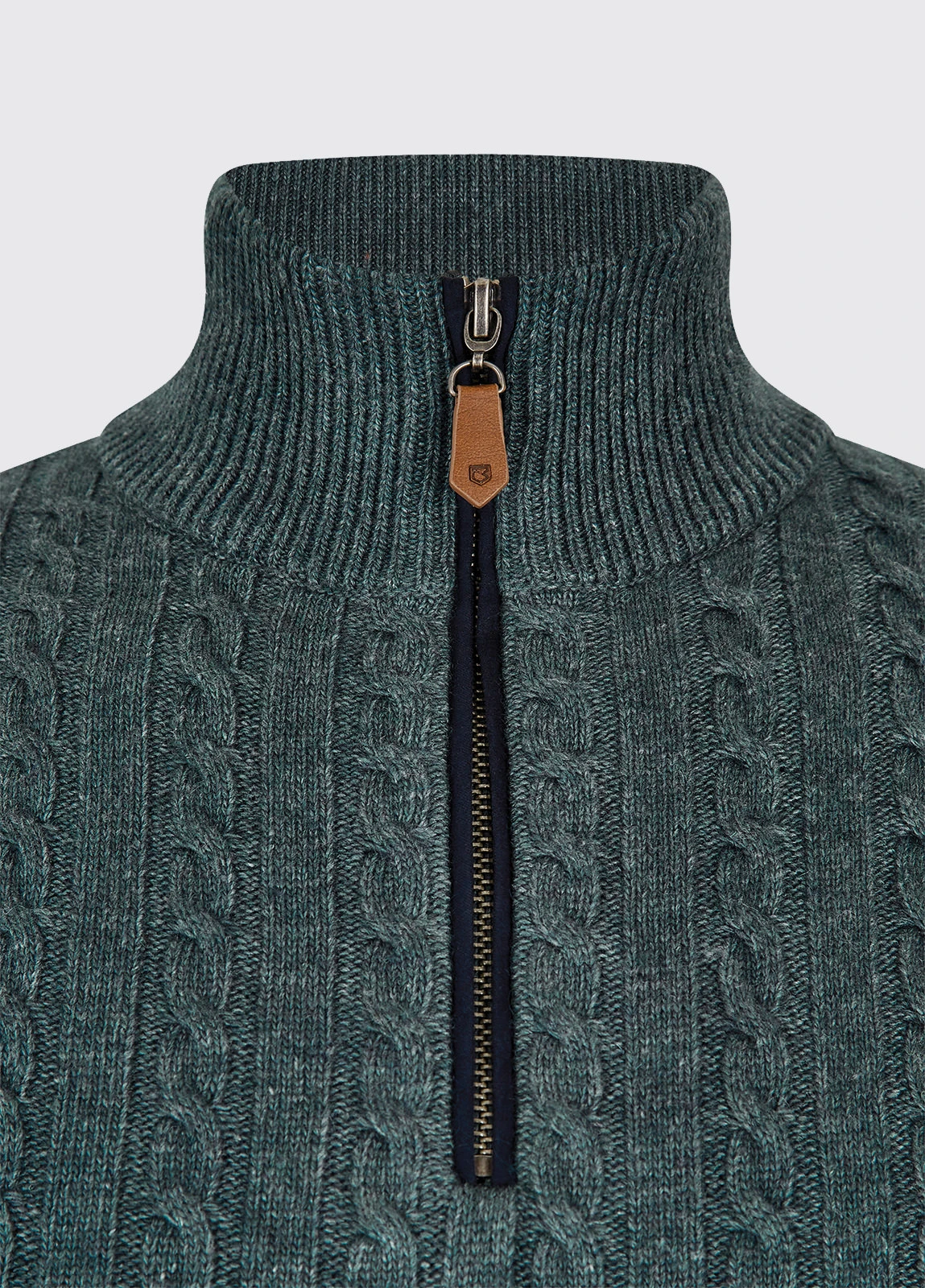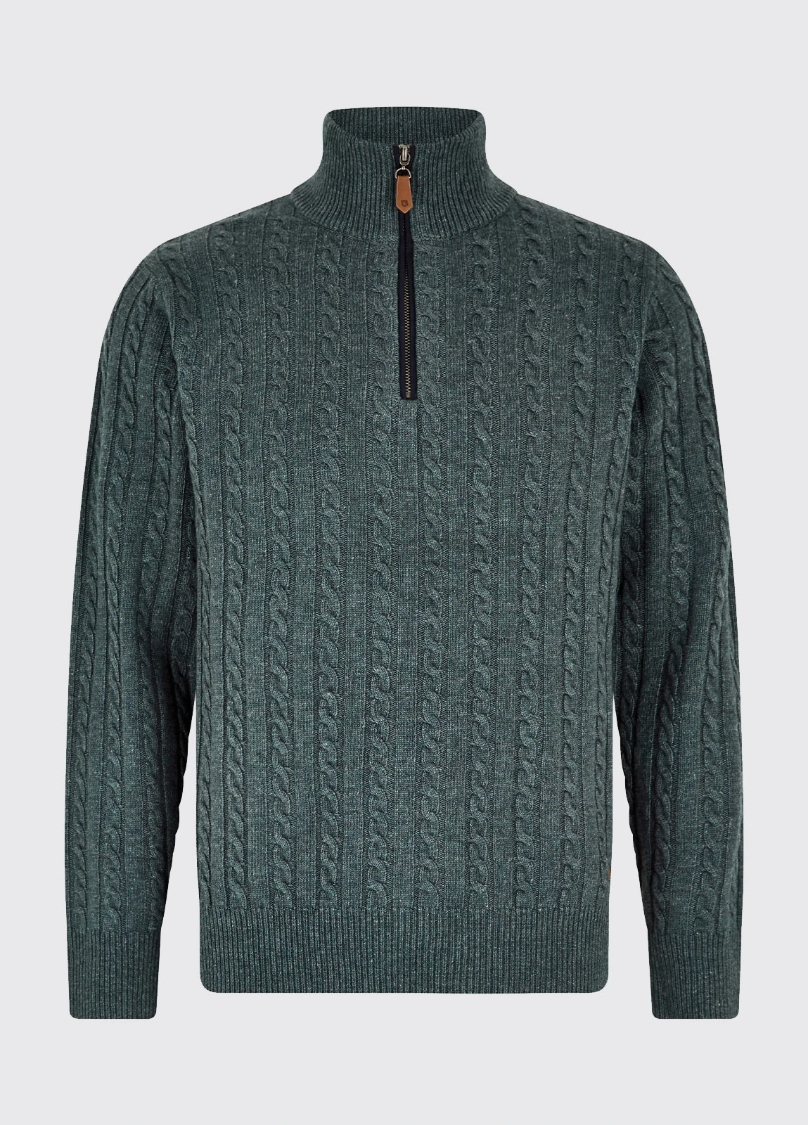 This super soft, cable stitch detailed, zip neck mens jumper is the perfect layer for bitterly cold days. Made from the unique blend of responsibly sourced wool, Nylon and Rayon, the yarn is ultra soft, wearable and durable. Wear underneath your favourite Dubarry gilet for a thermal effect, or if you’re inclined to say indoors, pair with jeans for a cosy, stylish look.