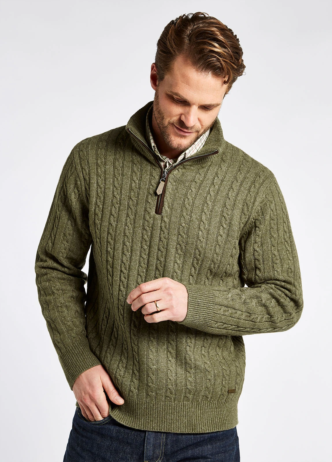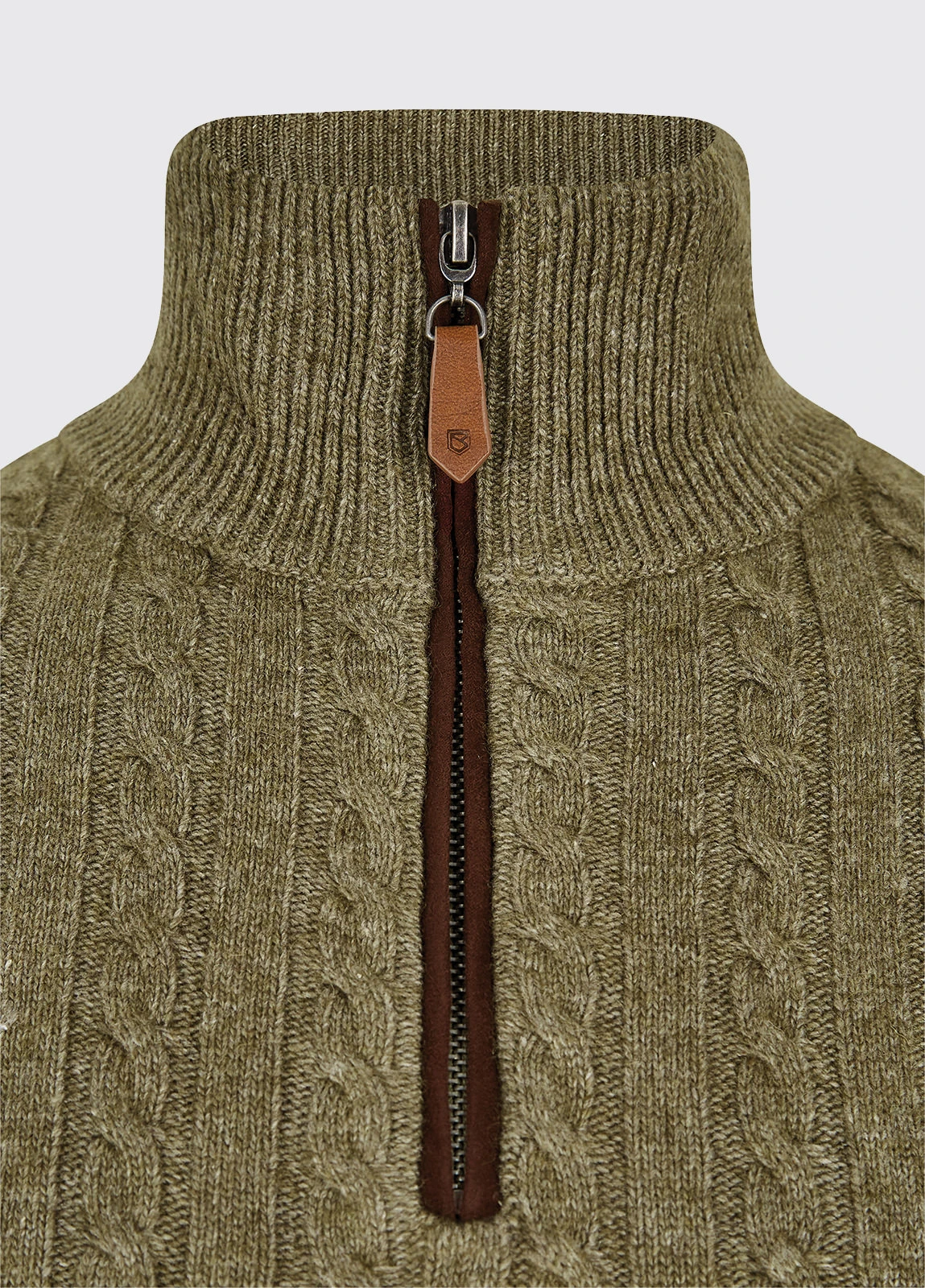This super soft, cable stitch detailed, zip neck mens jumper is the perfect layer for bitterly cold days. Made from the unique blend of responsibly sourced wool, Nylon and Rayon, the yarn is ultra soft, wearable and durable. Wear underneath your favourite Dubarry gilet for a thermal effect, or if you’re inclined to stay indoors, pair with jeans for a cosy, stylish look.