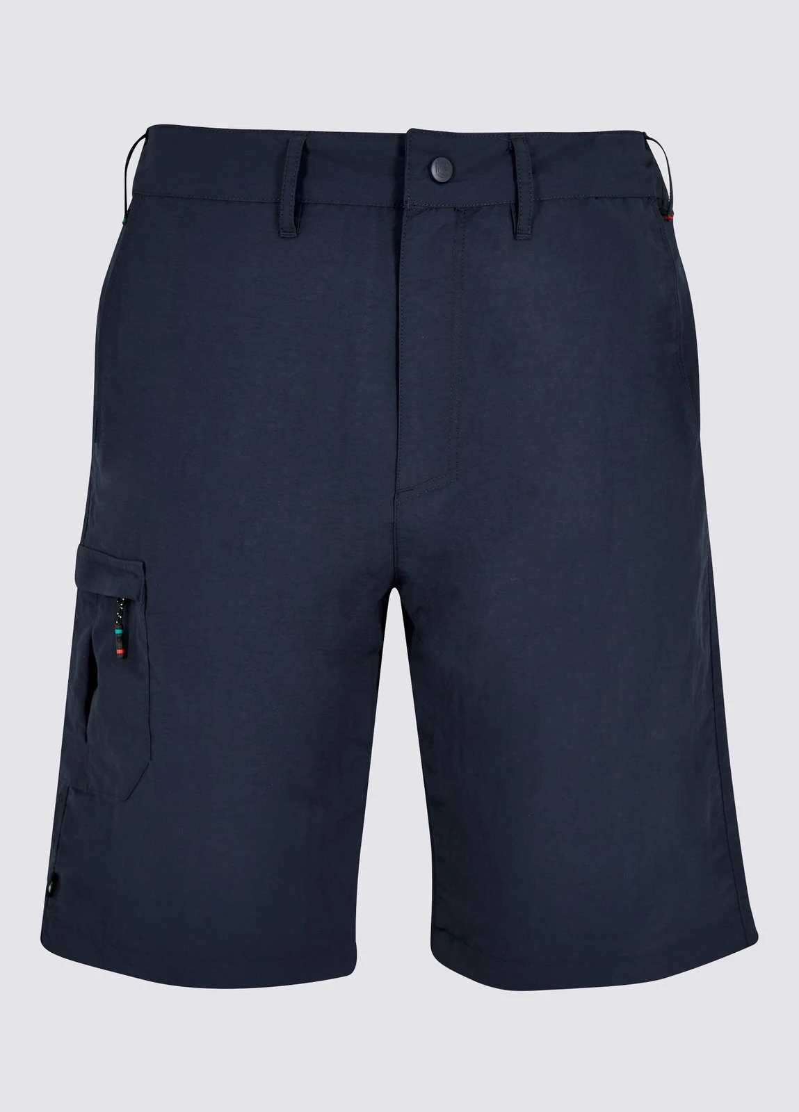 Classic, stylish and sporty, our Cyprus men’s crew shorts are a new design inspired by our heritage and informed by our in-depth knowledge of sailing. The lightweight fabric repels water, dries remarkably fast when it does get wet, and serves as an effective sun protection with UPF-50 UV protection. They’re also hard-wearing and will retain their colour after repeated exposure to sun and salt, even with regular washing. Technical features include a contoured, adjustable waistband with a non-slip inner and high back, designed for a secure and comfortable fit. Ample pockets secured with zips help keep your hands free when moving about on deck, and in one of the inner pockets you’ll find a handy removable eyewear cleaning cloth on a bungee cord to keep your sunglasses clear of salt spray.