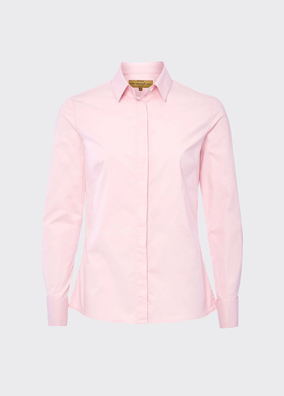 The Daffodil shirt is a beautifully tailored for sophisticated style. French cuffs have knot cufflinks and the buttoned front is neatly hidden while crisp, stretch cotton allows excellent comfort and movement at the same time as keeping its shape. Match with a Dubarry tweed jacket for an easy and elegant work day fix.