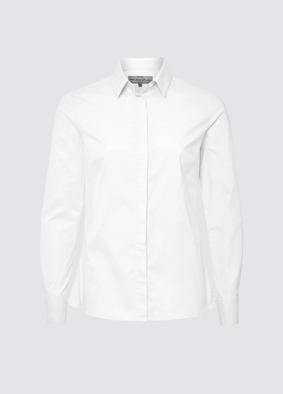 The Daffodil shirt is a beautifully tailored for sophisticated style. French cuffs have knot cufflinks and the buttoned front is neatly hidden while crisp, stretch cotton allows excellent comfort and movement at the same time as keeping its shape. Match with a Dubarry tweed jacket for an easy and elegant work day fix.