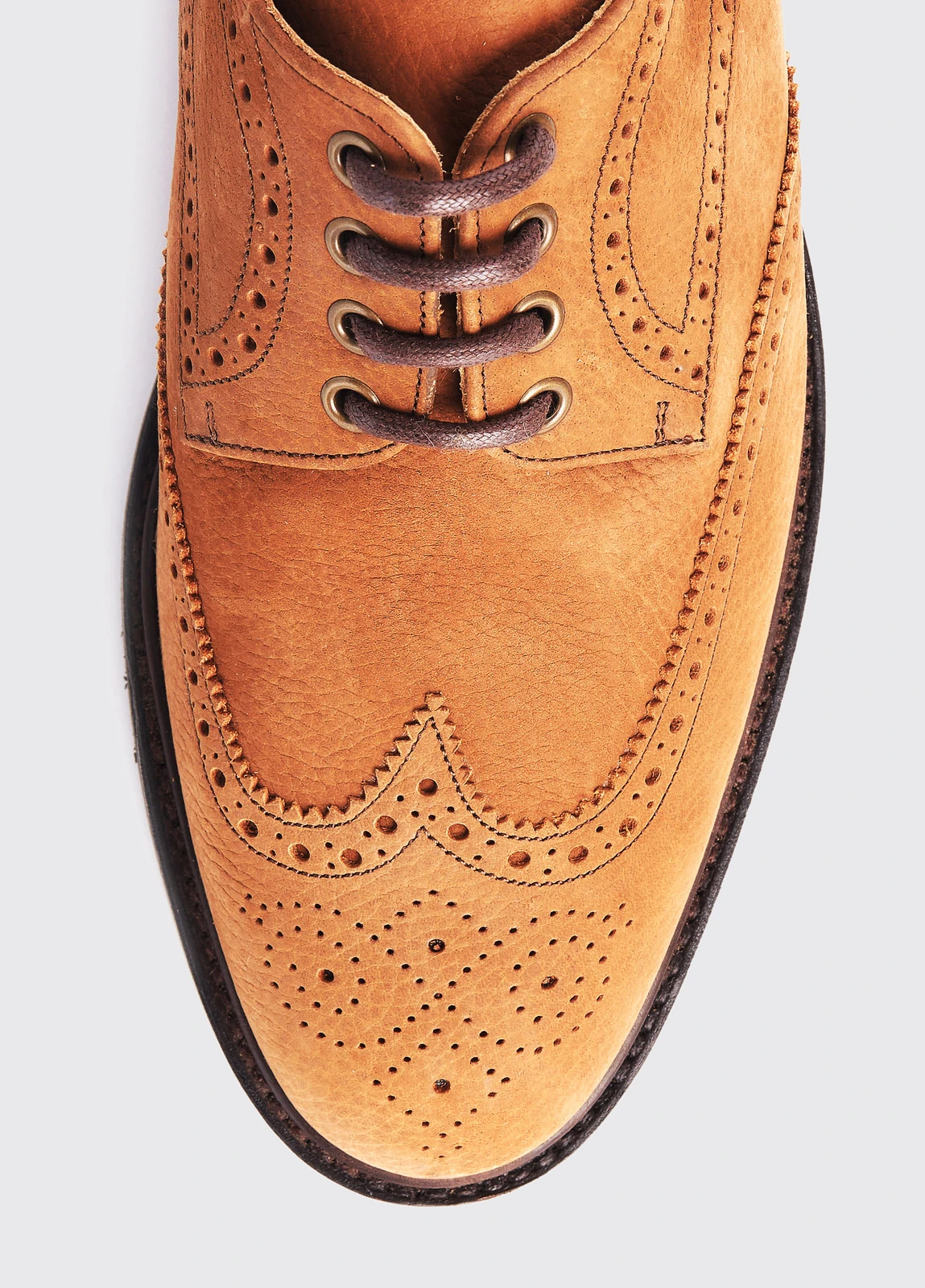 - Five-eye tie wax fabric laced brogue shoe with rustproof eyelets