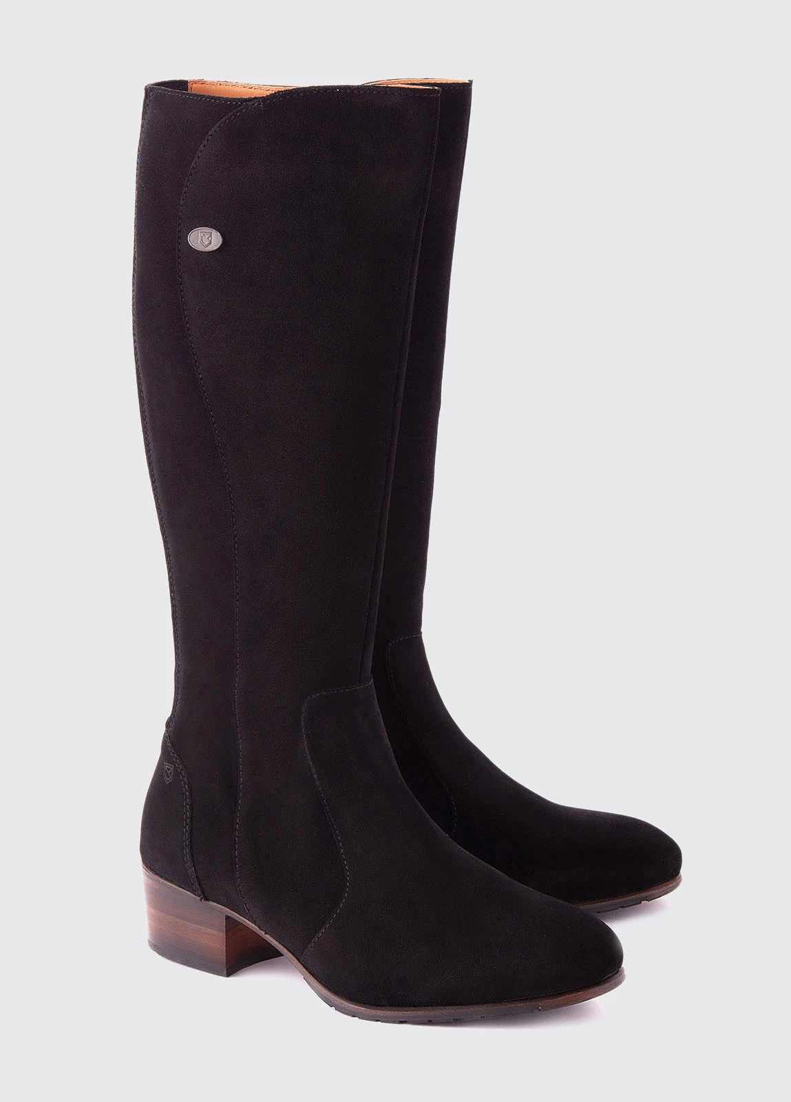 Turn heads in the beautifully crafted, knee-high Downpatrick boot. A streamlined suede and leather silhouette moulds comfortably around the leg and a small heel elongates legs offering a sophisticated companion to a variety of outfits. Team with a McDonnell knitted dress or tweed skirt for showstopping look at the races, or slip on over jeans to step out at the weekend. Water resistant DryFast-DrySoft™ finish will keep you dry and pristine wherever you head.