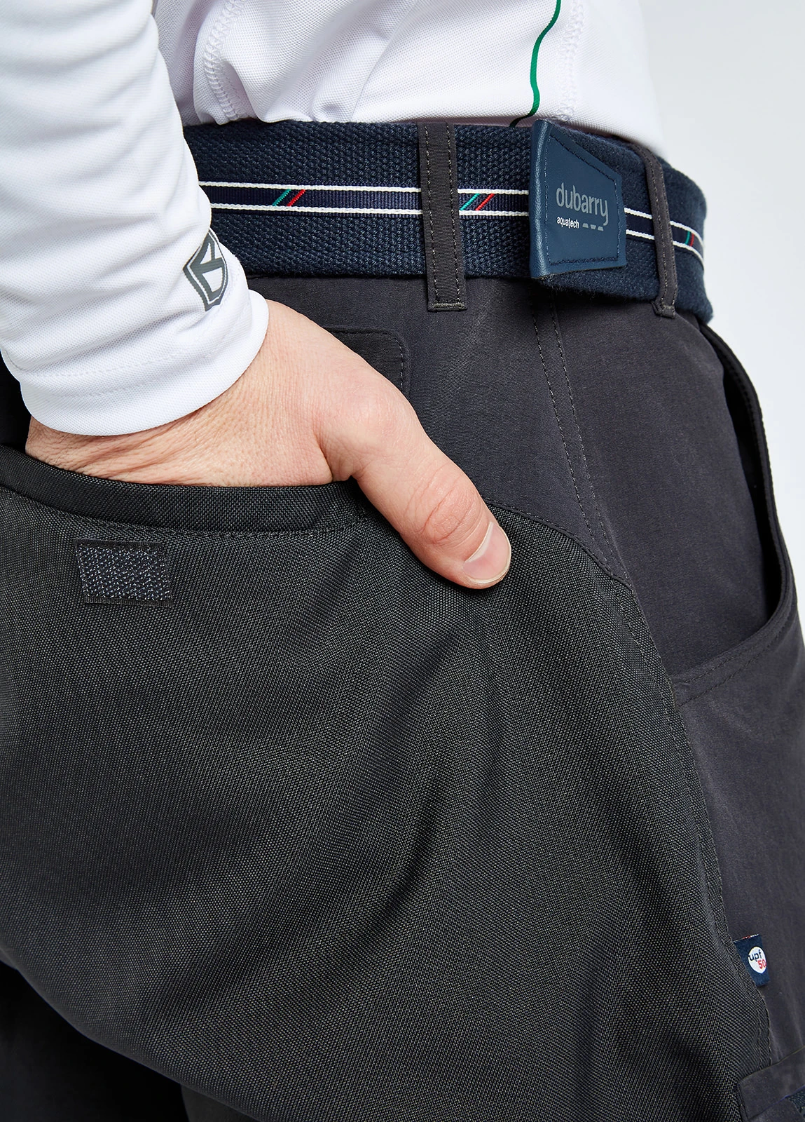 - Dubarry branding on right cargo pocket. Left cargo pocket left clear for corporate branding