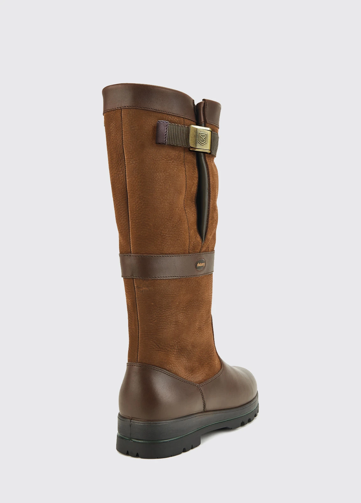 The Duncannon calf-height country boot is an easy to wear, pull-on waterproof boot, ideal for men and women. Shock-absorbing soles and a breathable soft leather exterior, team with an adjustable leg width fixture, making them an ideal go-to boot for long dog walking or for a quick splash into town. Team them with jeans and a Dubarry sweater or performance jacket, for a relaxed country-casual combination