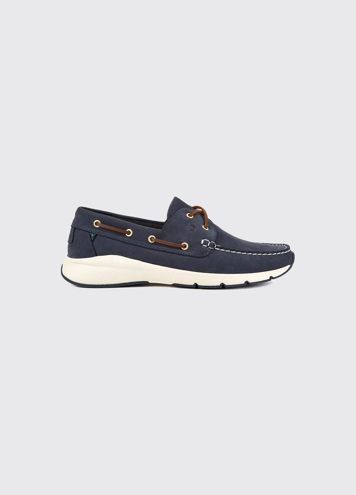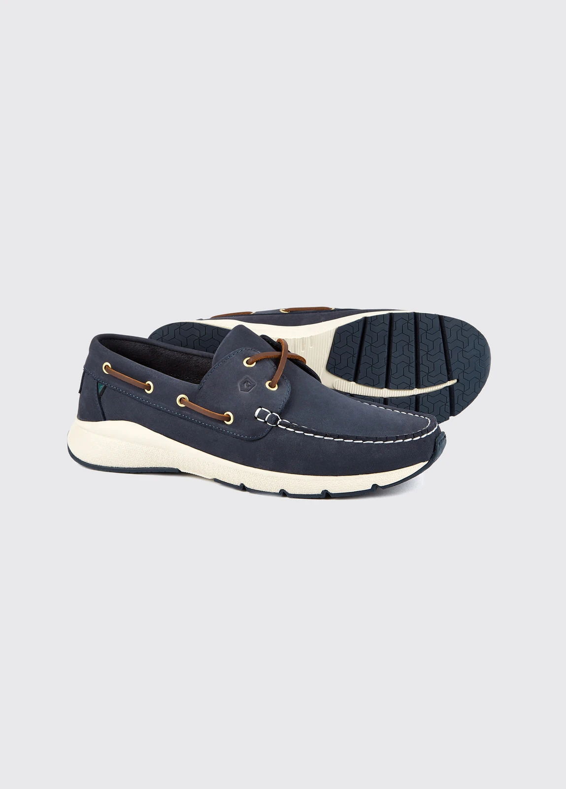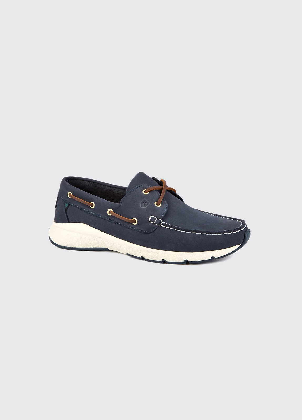 Dungarvan combines the classic good looks of authentic, traditionally handmade leather deck shoes with the shock absorption, support and comfort of lightweight technical trainers, plus the excellent grip of Dubarry’s award-winning NonSlip-NonMarking™ outsoles with their uniquely effective water dispersion channels. The lacing system is equally versatile, tie them tight for a secure fit with maximum performance or leave them loose for a relaxed fit and slip them on and off with ease. The uppers are crafted from high-quality nubuck and our unique DryFast-DrySoft™ leathers with a water-resistant finish and a hand sewn, waterproof chain butt seam on the toecap. Smart, hard-wearing and sporty.
