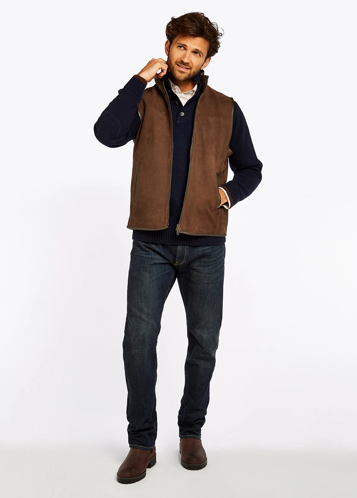A standout piece, the Dunhill gilet is made with beautifully soft, walnut coloured leather edge with mahogany tone details and is quilted for the perfect blend of luxury and warmth. It’s a sharp looking layer to lift a weekend outfit- try matched with a Dubarry Nolan sweater, jeans and our Goodyear Welted boots. Alternatively layer under a Ballinturbet jacket and co-ordinate with some Galway boots for a shoot day look with a difference.