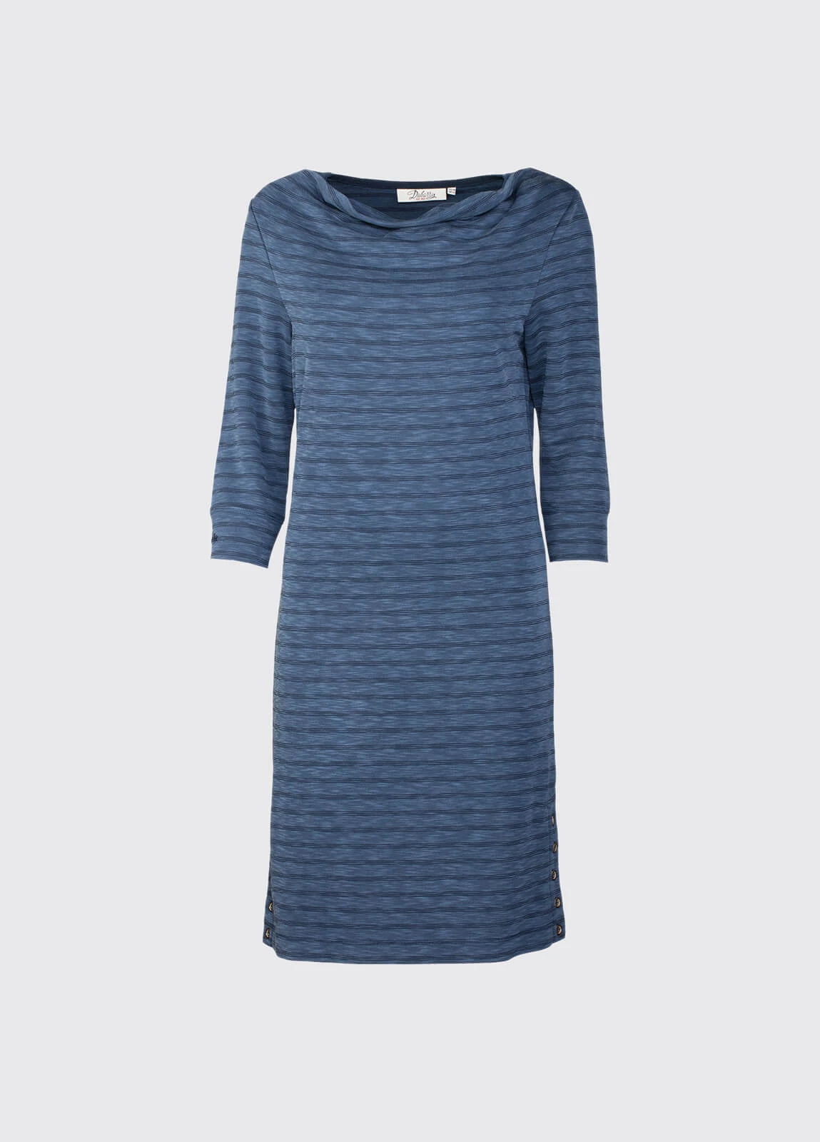 New for Dubarry’s spring and summer women’s clothing collection is Ennis, a 3/4 sleeve drape neck dress. This versatile ladies’ fashion piece will bring sporty elegance to your wardrobe and is easy to wear with Dubarry women’s shoes for a relaxed feel. Ad – Shadow stripe, ¾ sleeve cowl neck dress, falling to above the knee, with a beautiful drape and functional button detail on the lower side seams.