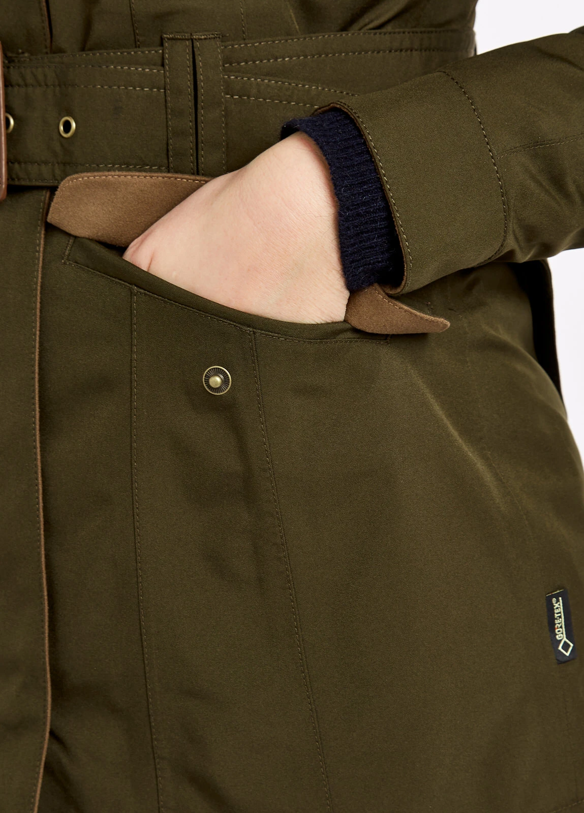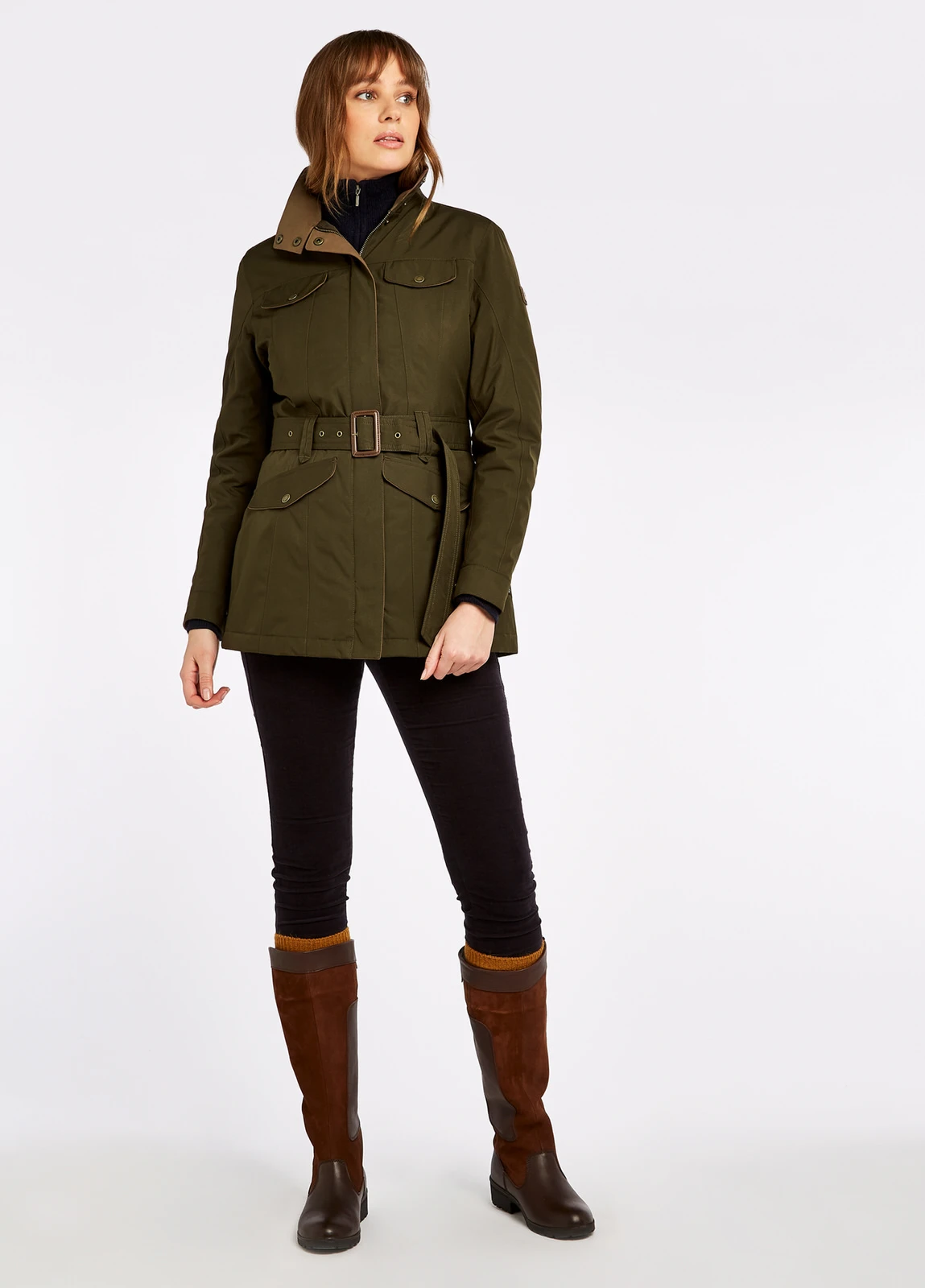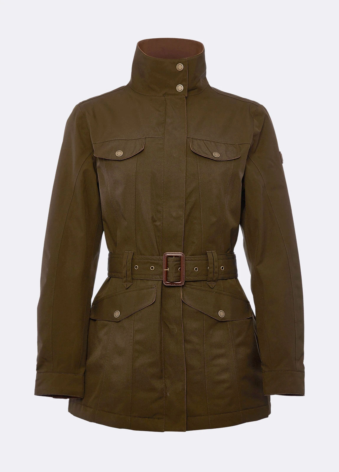 An elegant country sports jacket, the Friel has GORE-TEX technology with a lightweight fill, meaning waterproof warmth without bulk. A belted waist gives a flattering, tailored silhouette that pairs brilliantly with stretch jeans and over a warm knit. Alternate long leather country boots and Chelsea boots for a simple rural to urban transformation.