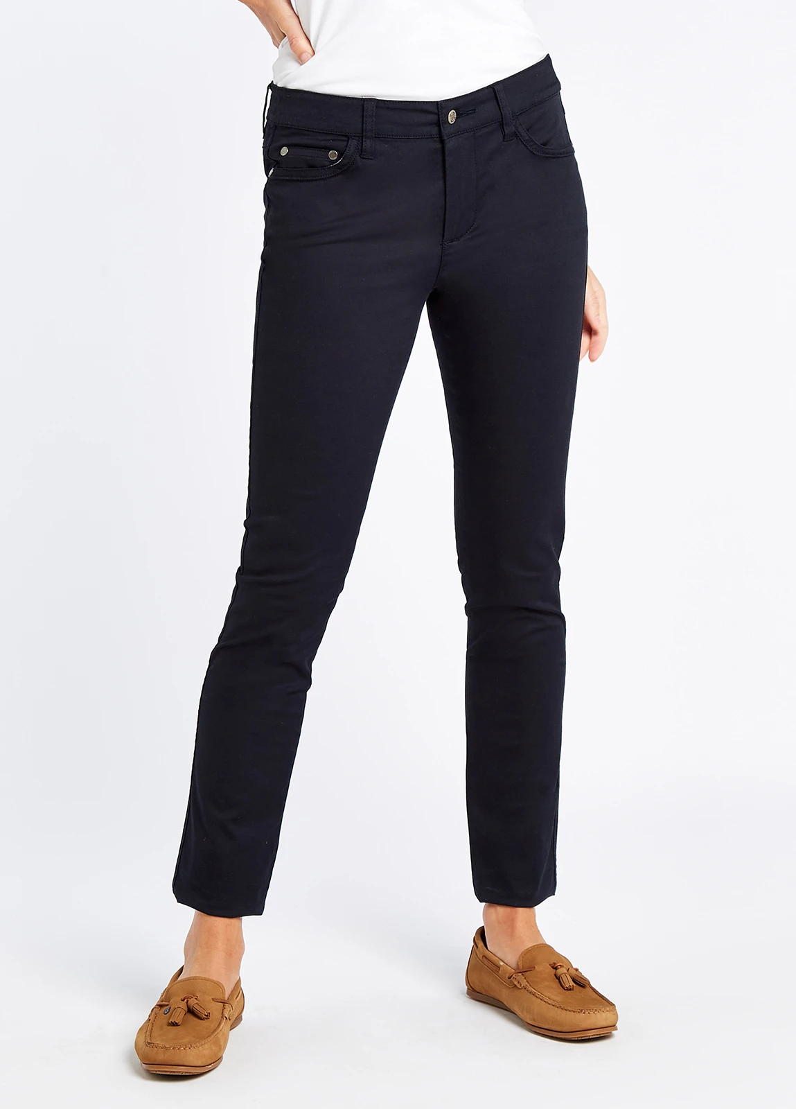 Modelled on our popular Honeysuckle jean, the Greenway is a lightweight summer alternative. Slim-fitting with flattering back pockets, dress them up for the office or take life easy and while away the weekend in comfort.