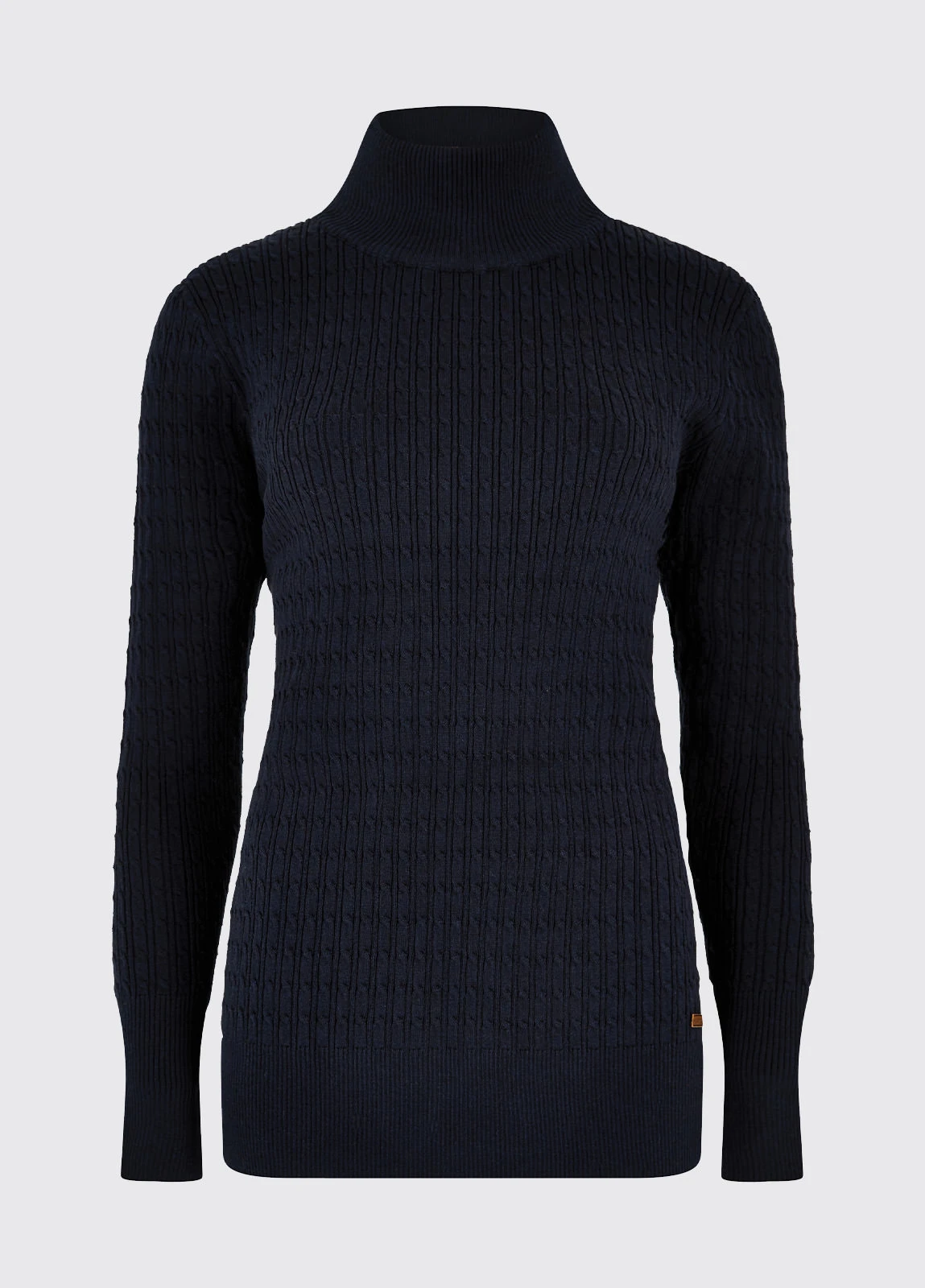This super soft, cable knit, ladies roll-neck jumper is the perfect layer for bitterly cold days. Wear underneath your favourite Dubarry gilet for a thermal effect, or if you’re inclined to say indoors, pair with jeans for a cosy, stylish look.
