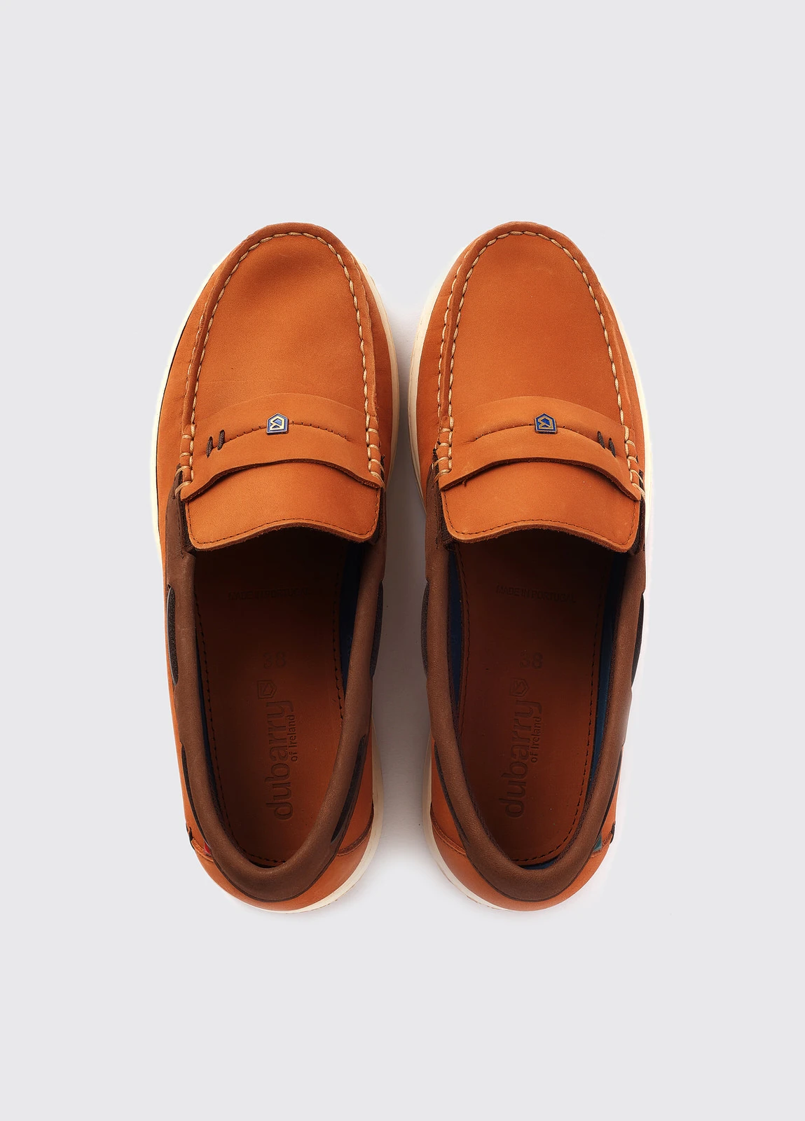 The Havana is slip on deck shoe with bold contrasting colour nubuck leather design, ideal for sprucing up a spring or summer wardrobe. NonSlip-NonMarking™ shock absorbing soles and water resistant, lightweight soft nubuck leather give stability, breathability and comfort. An ideal way to set sail this summer, matched with jeans, shorts or a Dubarry Mallow skirt.