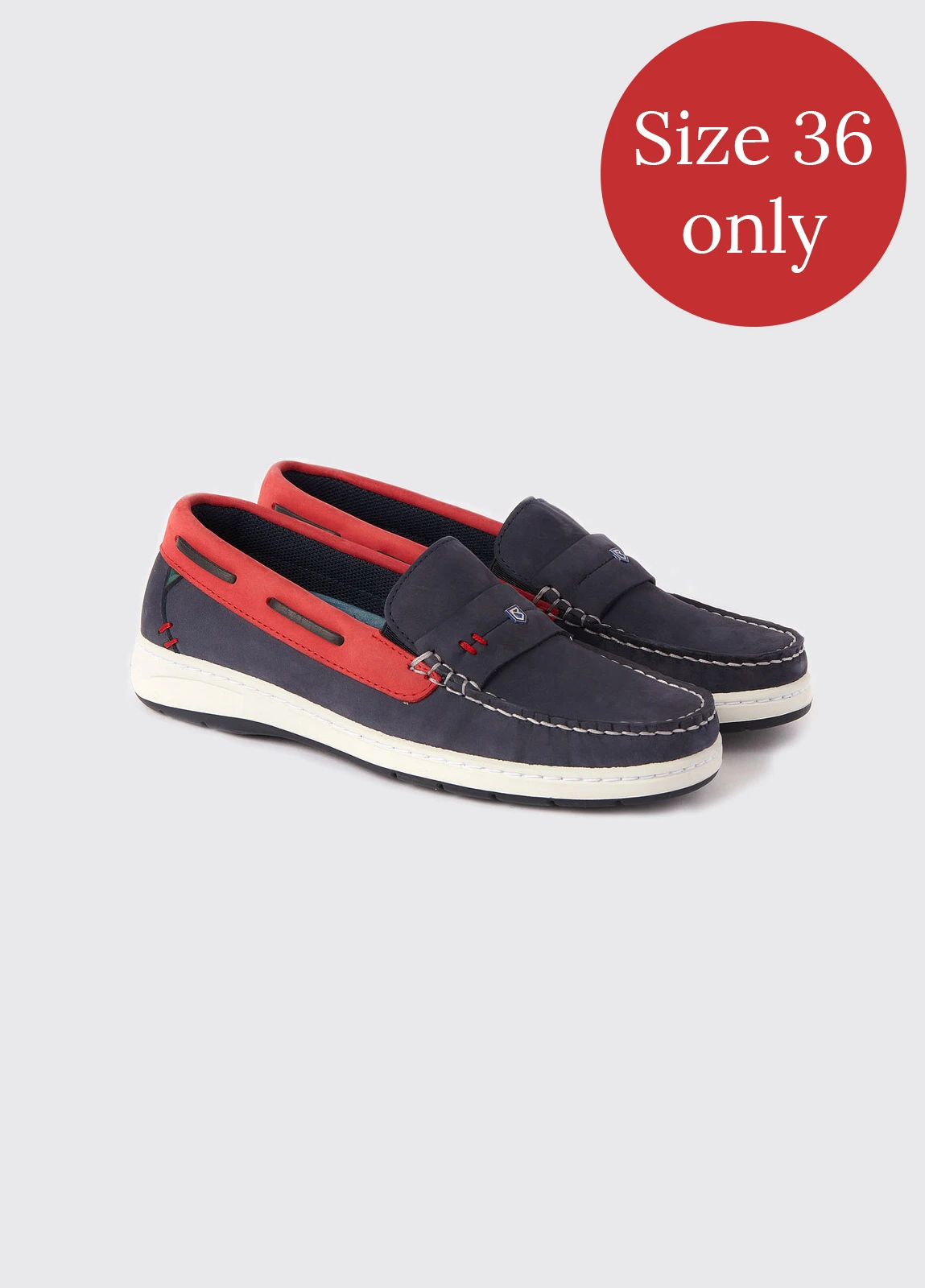The Havana is slip on deck shoe with bold contrasting colour nubuck leather design, ideal for sprucing up a spring or summer wardrobe. NonSlip-NonMarking™ shock absorbing soles and water resistant, lightweight soft nubuck leather give stability, breathability and comfort. An ideal way to set sail this summer, matched with jeans, shorts or a Dubarry Mallow skirt.