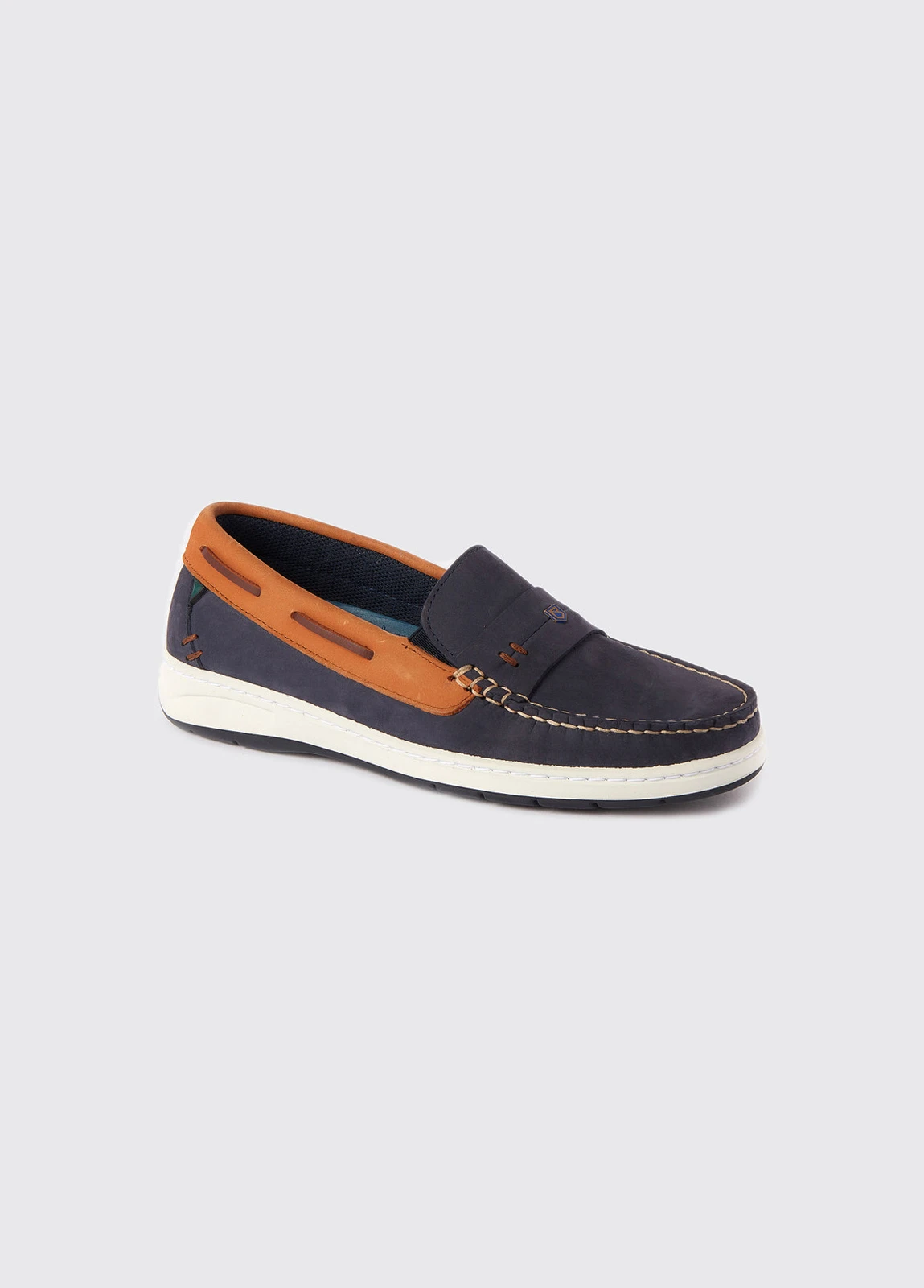 The Havana is slip on deck shoe with bold contrasting colour nubuck leather design, ideal for sprucing up a spring or summer wardrobe. NonSlip-NonMarking™ shock absorbing soles and water resistant, lightweight soft nubuck leather give stability, breathability and comfort. An ideal way to set sail this summer, matched with jeans, shorts or a Dubarry Mallow skirt.