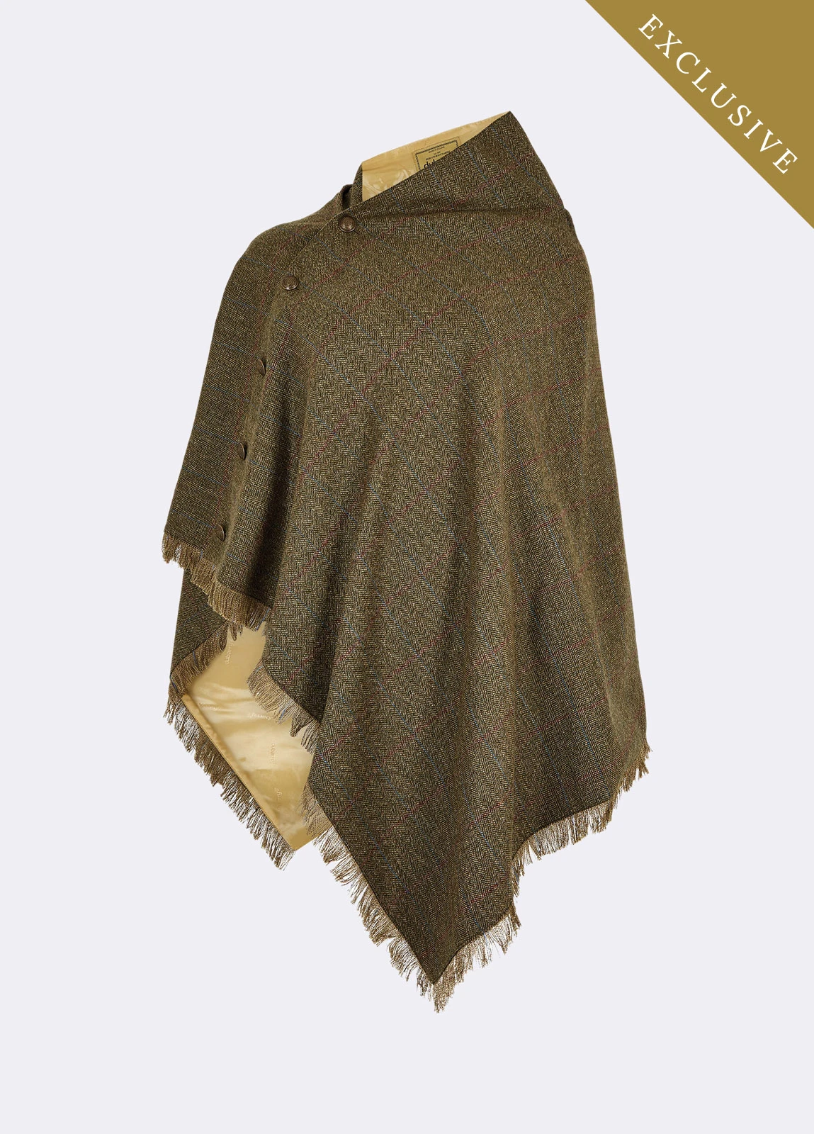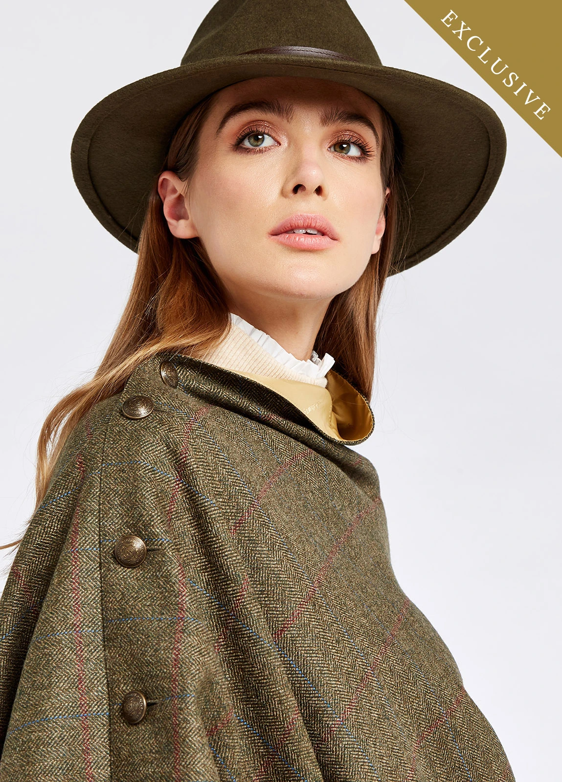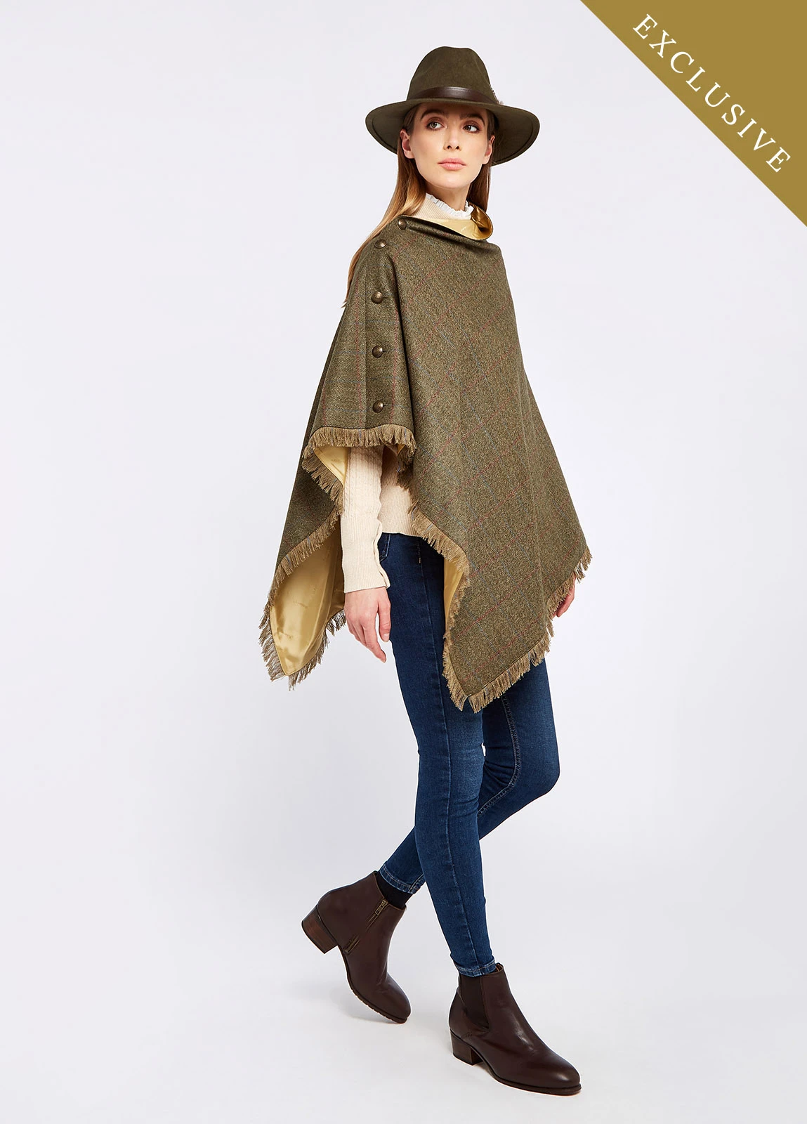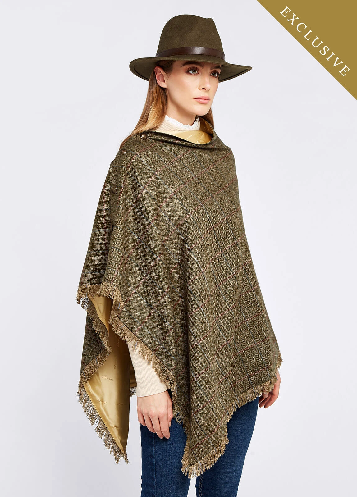 The tweed that should be in every Woman’s wardrobe. Dubarry’s Hazelwood poncho is a super versatile and comfortable piece which you will find yourself in again and again. Cosy Teflon coated 100% wool drapes elegantly, fastened to one side with smart brass coloured buttons and the one-size-fits-all relaxed style feels as at home at the races as in town or the local pub.