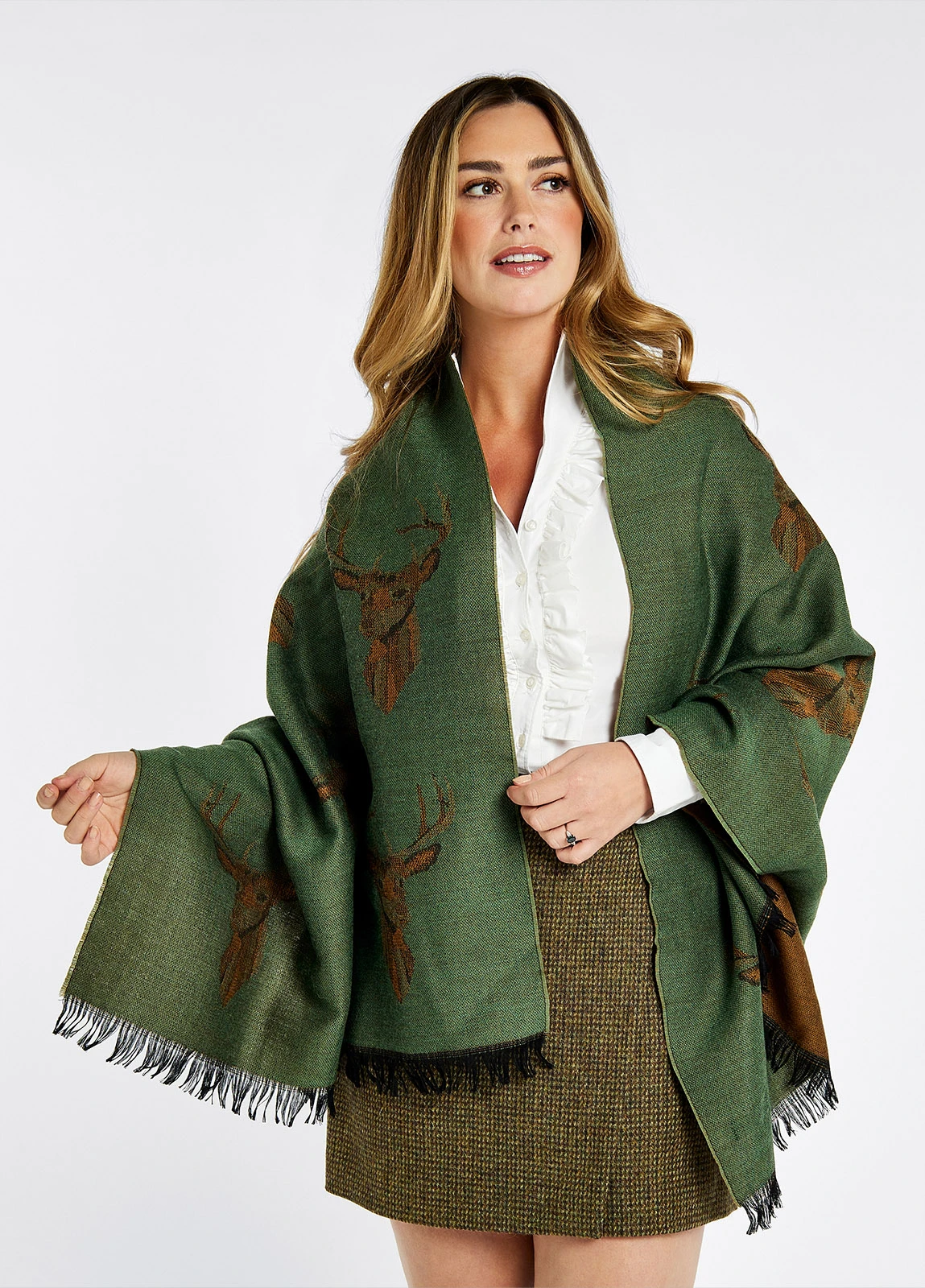This ladies stole is perfect for adding a styling extra layer to keep the winter chill at bay. Featuring a stag head motif, we like to see the Heatherbell paiGreen with a pair of dark jeans and Dubarry lifestyle boots for a relaxed, stylish look.