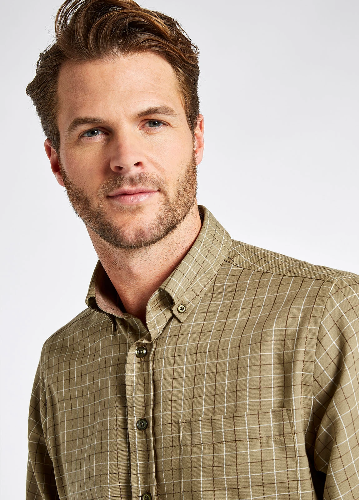 This quality, soft cotton men’s shirt is hard-wearing and perfect for slipping on under a Dubarry gilet or jumper for either a day on a peg, or just relaxing at home. The Hollymount is a staple for any country gentleman’s wardrobe and comes with both a chest pocket and a faux suede trim.