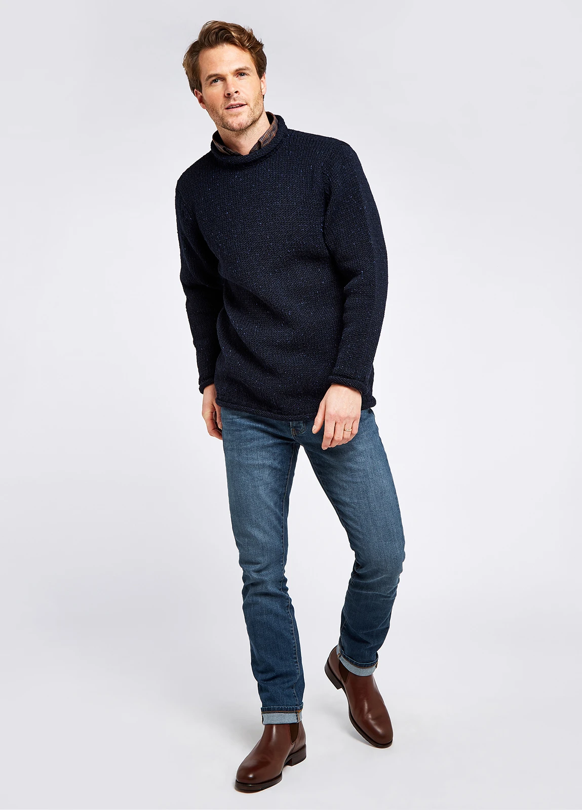 The Killeshin fisherman crew neck for your no-nonsense perfect winter warmer look no further. Knitted in 100% Donegal wool, produced and spun in Ireland this traditional sweater has enduring style and will see you through the seasons year after year.