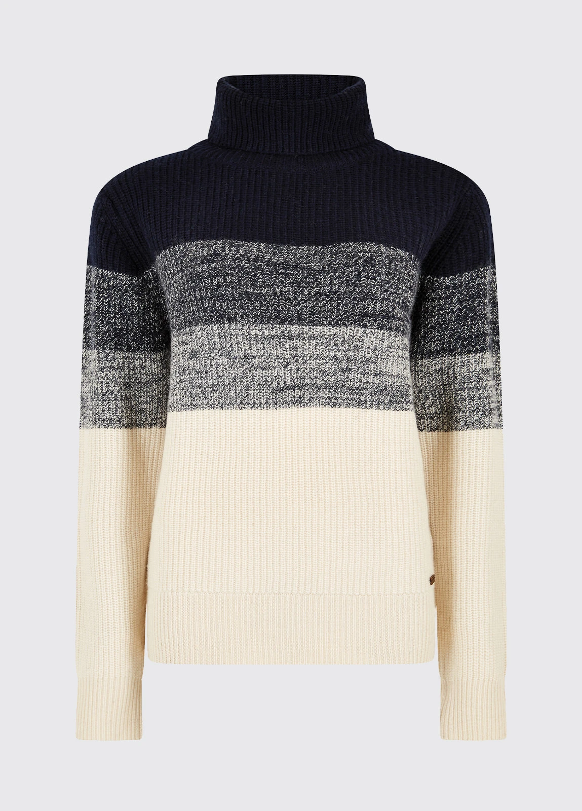 This super soft, luxury wool-mix ladies roll neck is the cosy layer everyone needs in their lives. Pair with jeans and lace up ankle boots for a Scandinavian-inspired laid back look, or if you want something a little dressier, wear the Killossery with a black satin-style midi skirt and heeled boots!