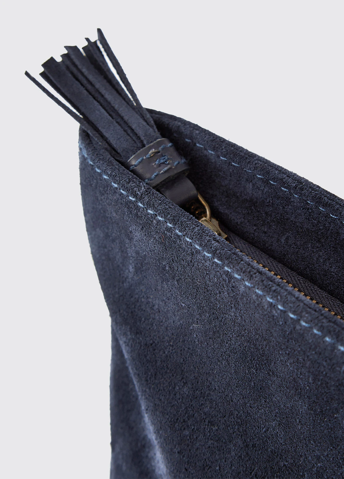 - Easy-to-grab suede tassel zip pull