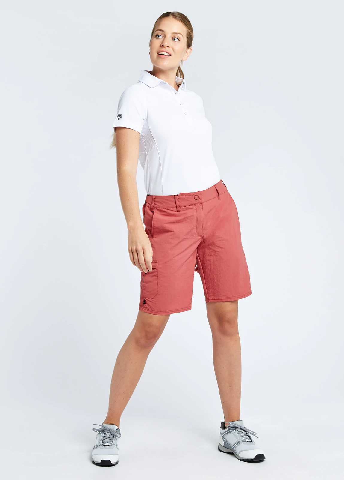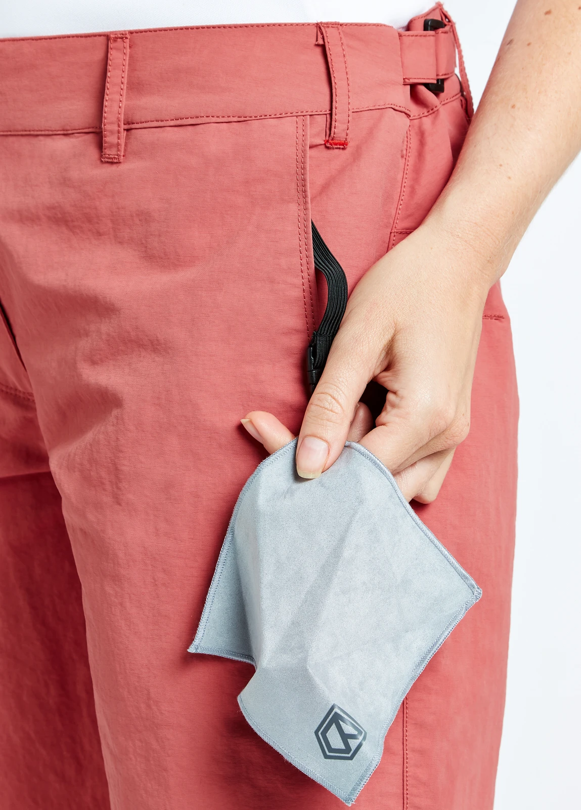 - Contoured adjustable waistband has non-slip inner with high back