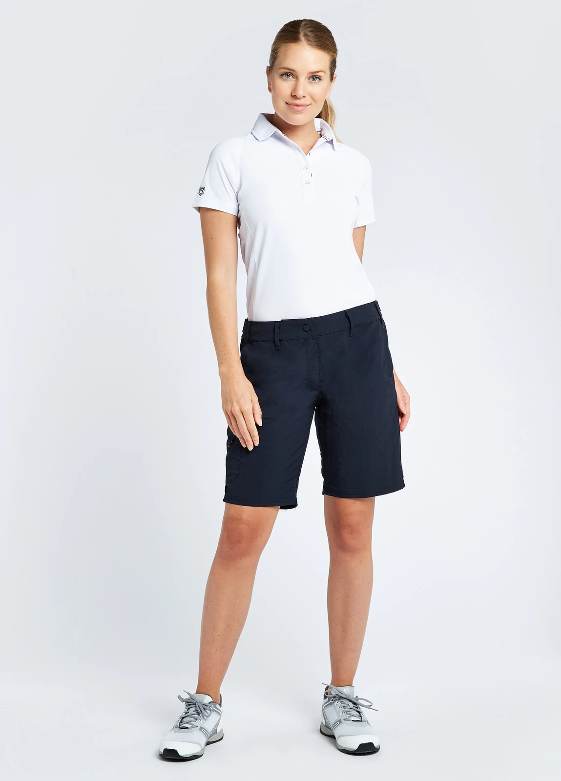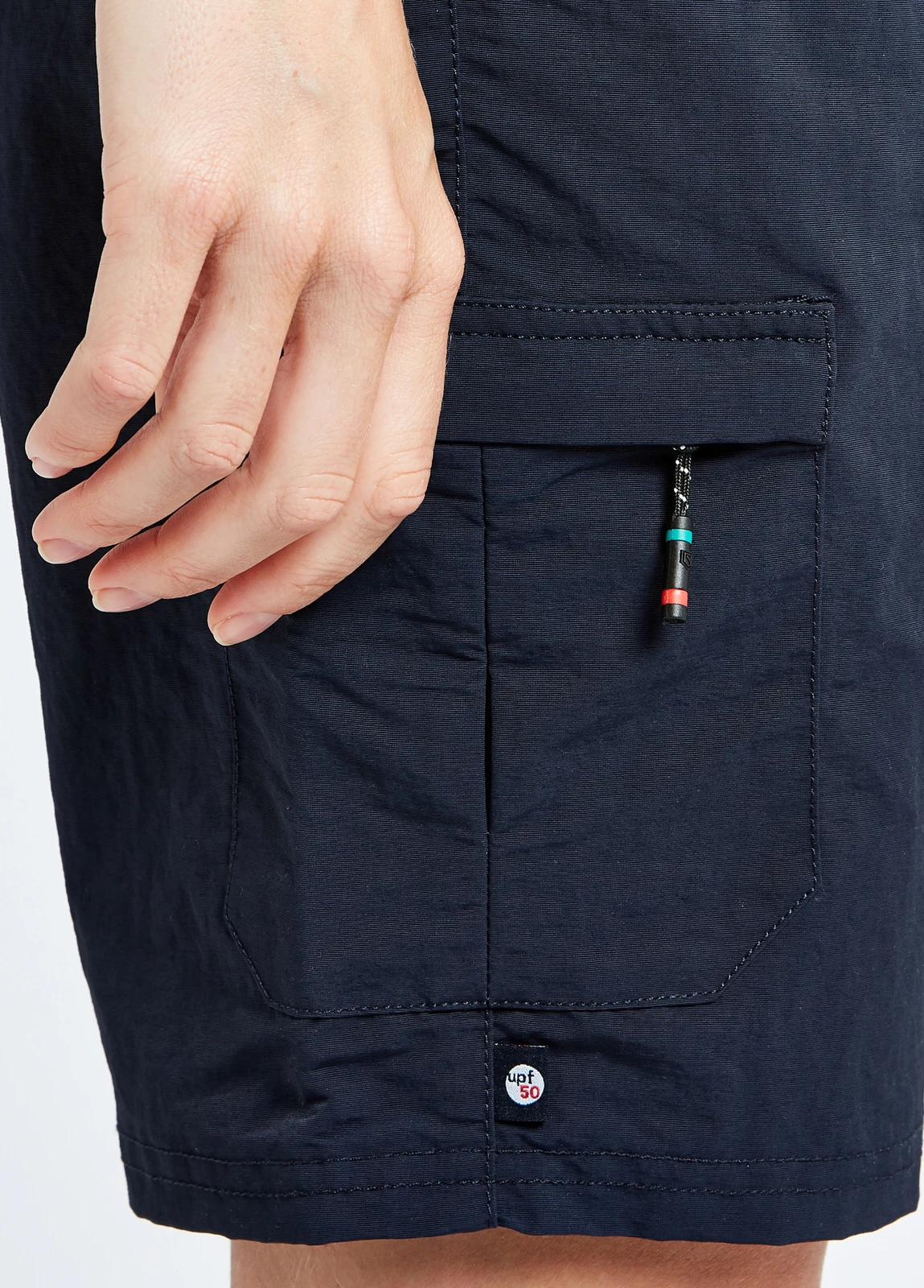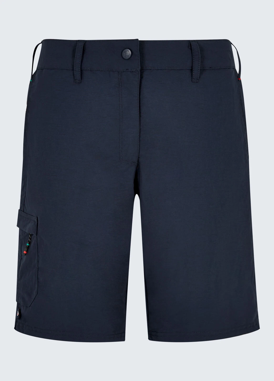 Classic, stylish and sporty, our Minorca women’s crew shorts are a new design inspired by our heritage and informed by our in-depth knowledge of sailing. The lightweight fabric repels water, dries remarkably fast when it does get wet, and serves as an effective sun protection with UPF-50 UV protection. They’re also hard-wearing and will remain colour fast after repeated exposure to sun and salt, even with regular washing. Technical features include a contoured, adjustable waistband with a non-slip inner and high back, designed for a secure and comfortable fit. Ample pockets secured with zips help keep your hands free when moving about on deck, and in one of the inner pockets you’ll find a handy removable eyewear cleaning cloth on a bungee cord to keep your sunglasses clear of salt spray.