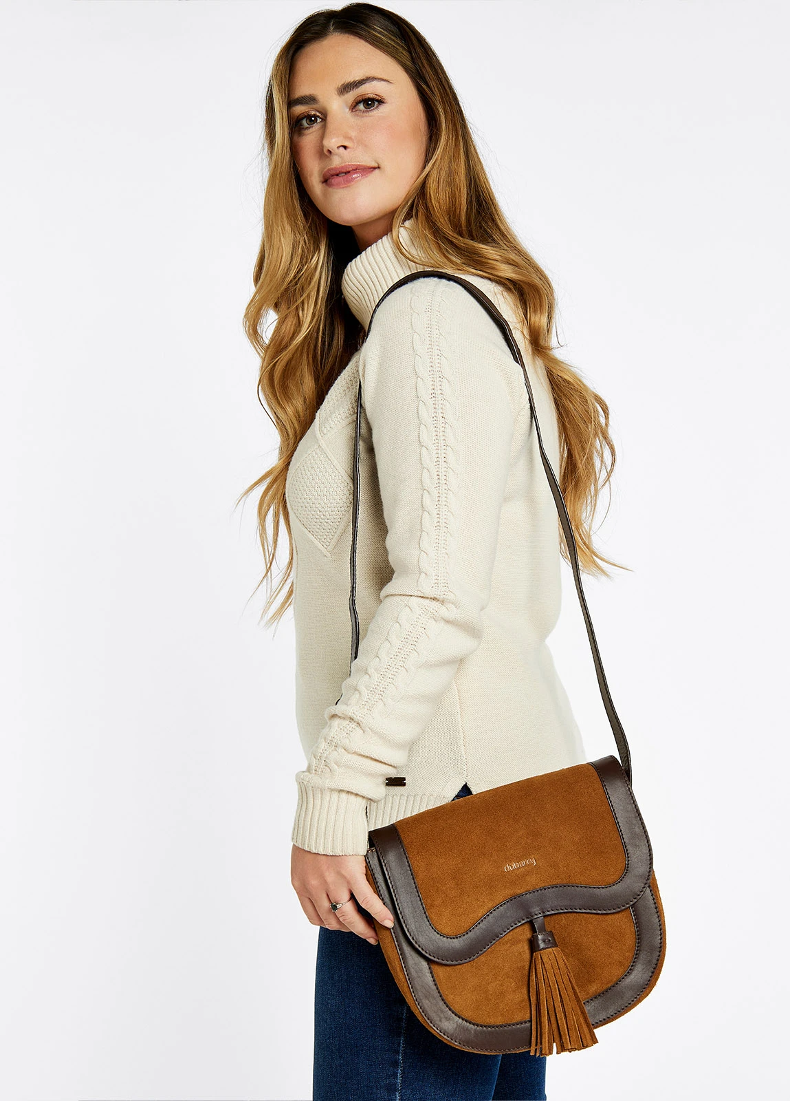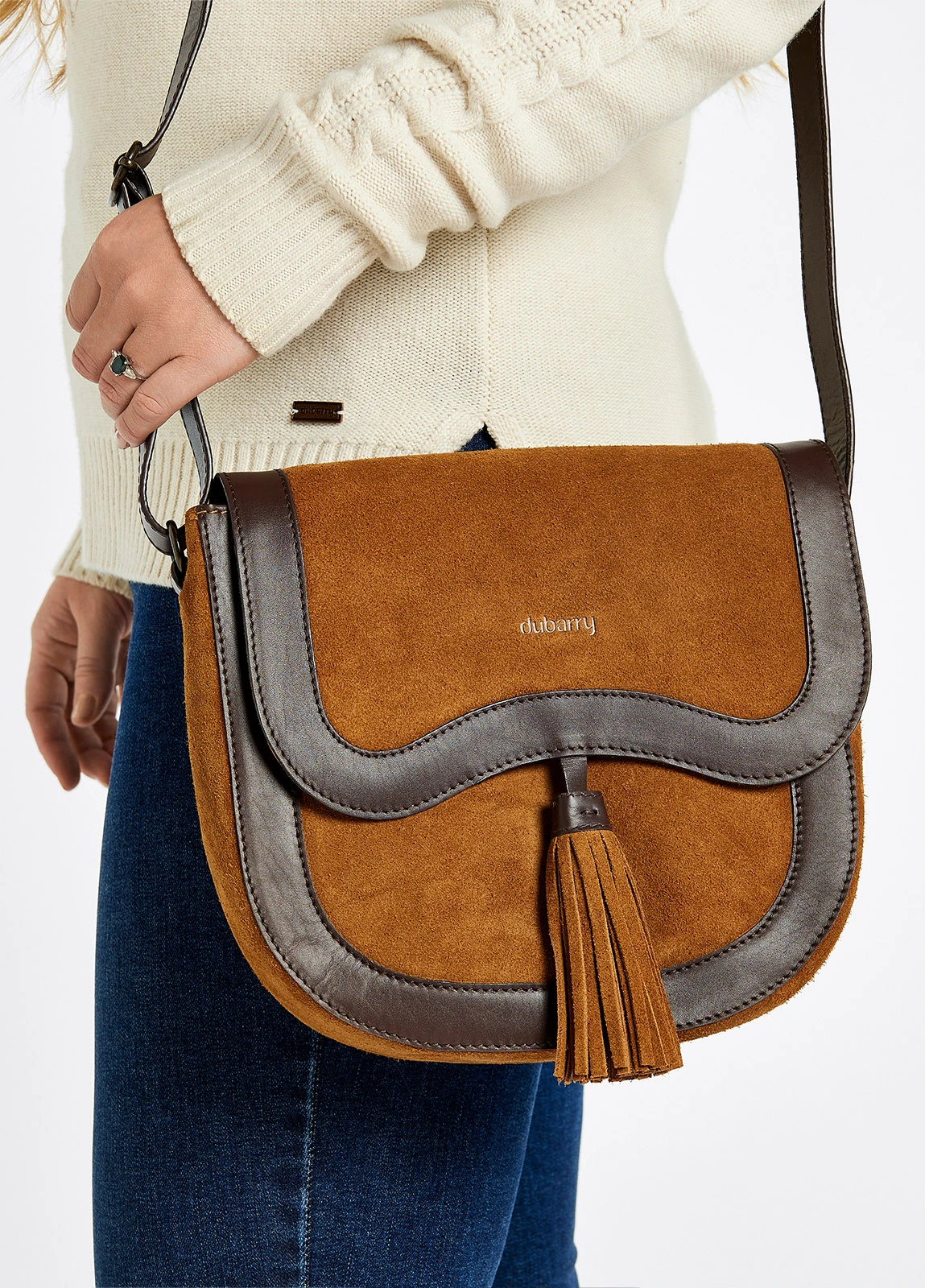 Compact, smart and just the size for your essentials, the Monart saddle bag is made with a combination of suede and leather,which coordinate beautifully with the Dubarry footwear range. With a useful, adjustable cross body strap it also leaves you hands free for the essentials, like race cards, bonfire night sparklers and festive mince pies.