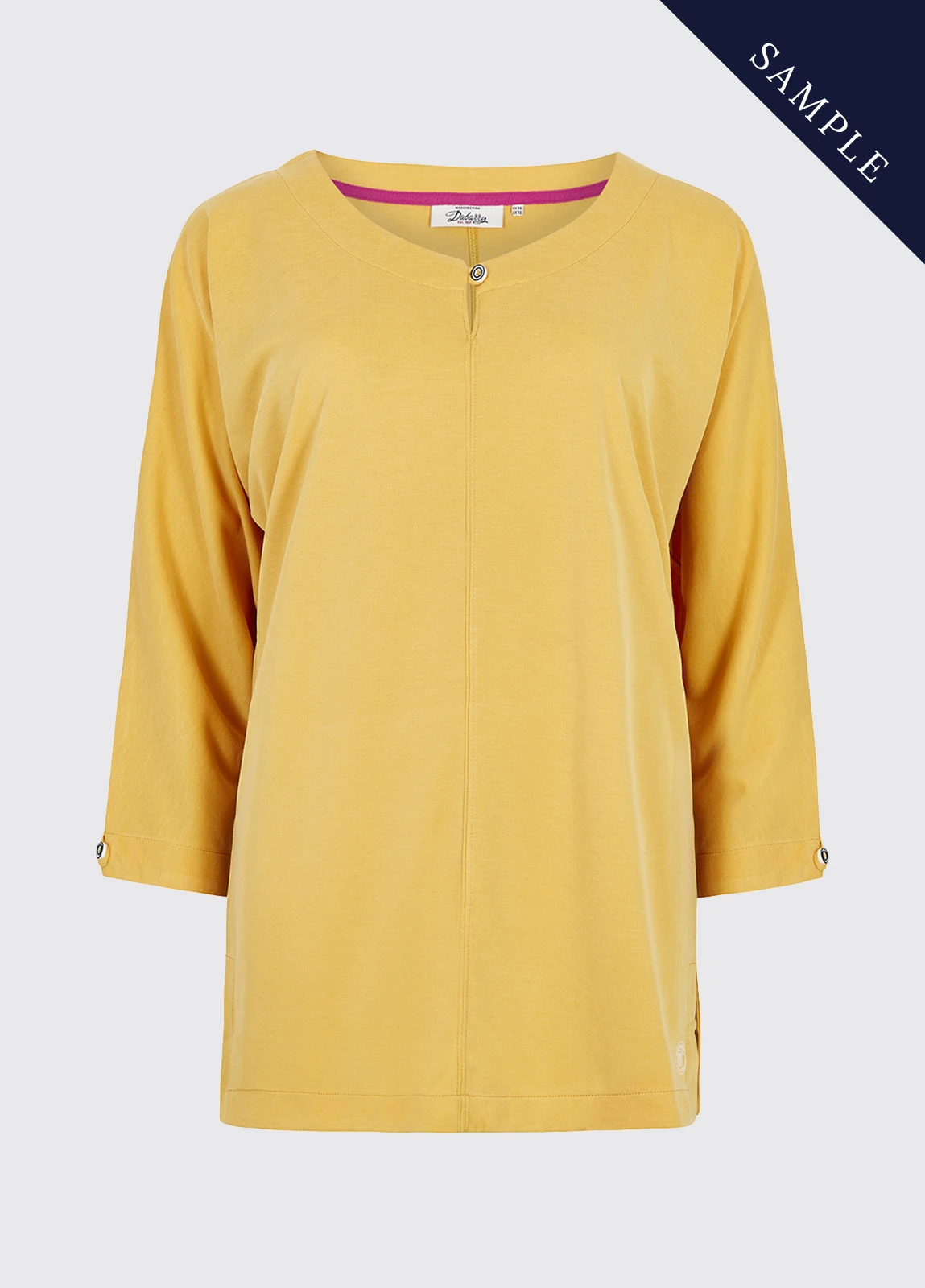 - Three-quarter length sleeves with button and loop detail