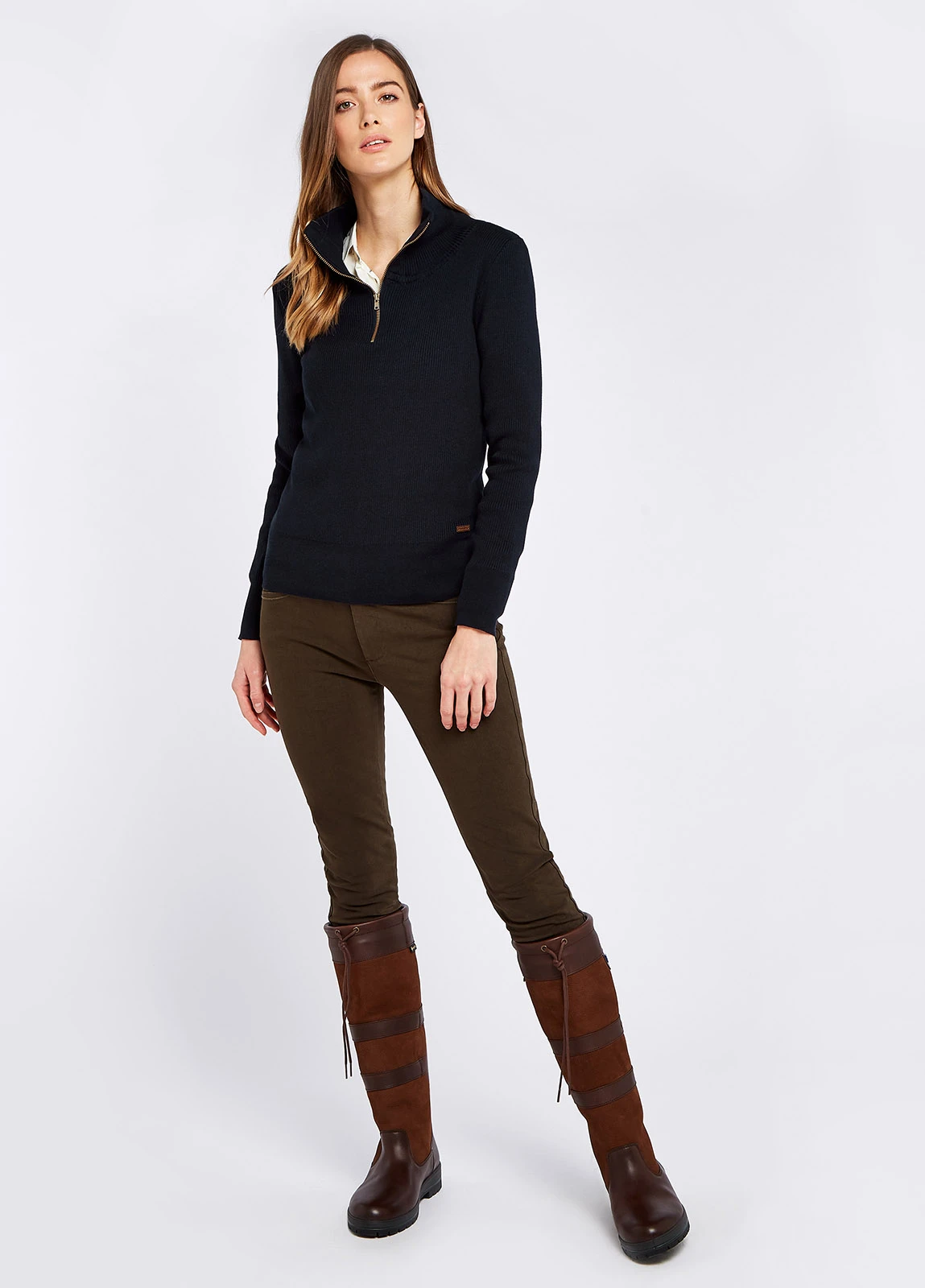 For a slimline silhouette that keeps the heat in, the Newtown is the perfect versatile seasonal sweater. Layer under a Sheedy gilet with jeans and Galway boots for a relaxed weekend wear or turn heads with a Blossom tweed skirt and Downpatrick knee high boots.