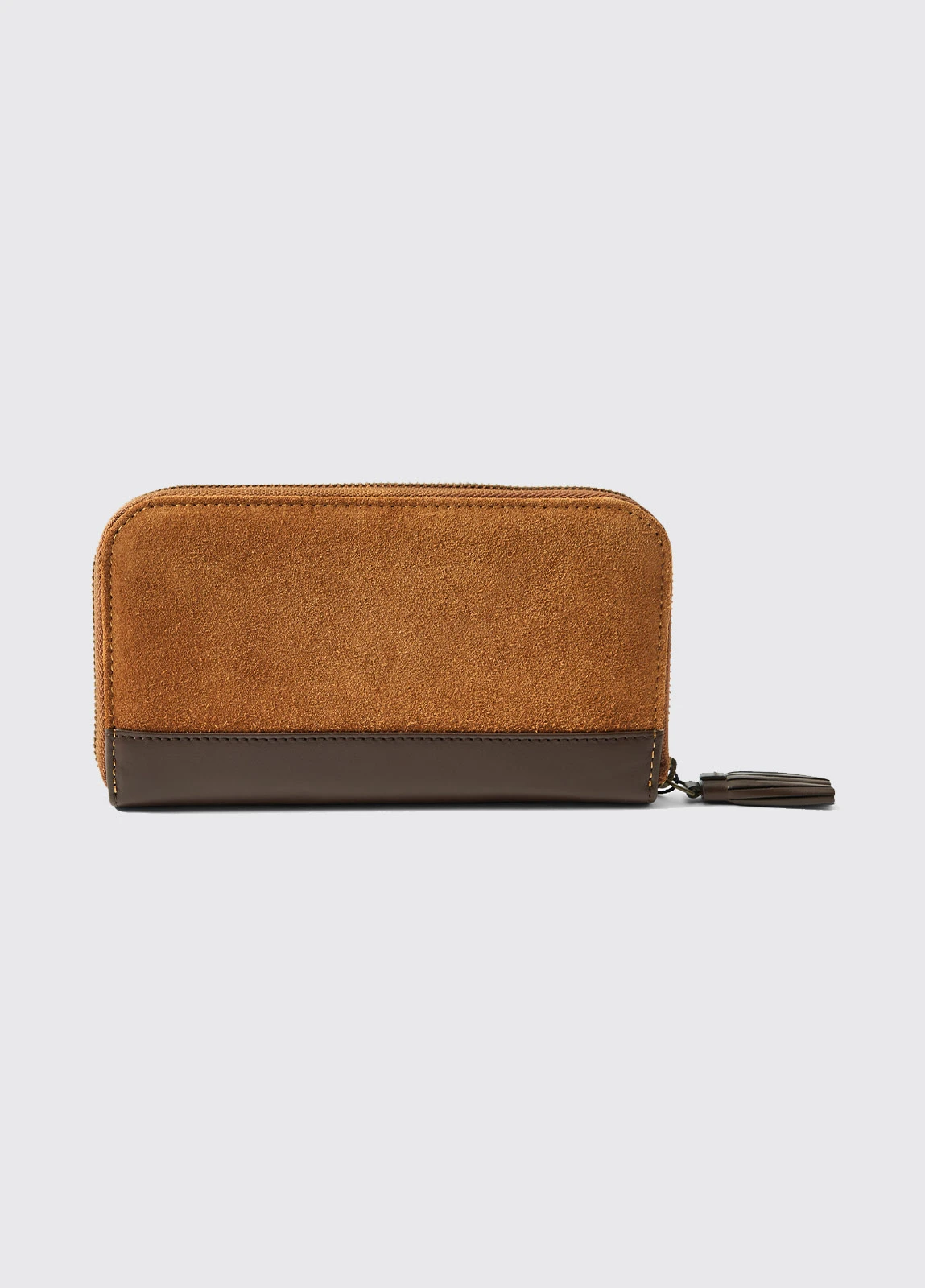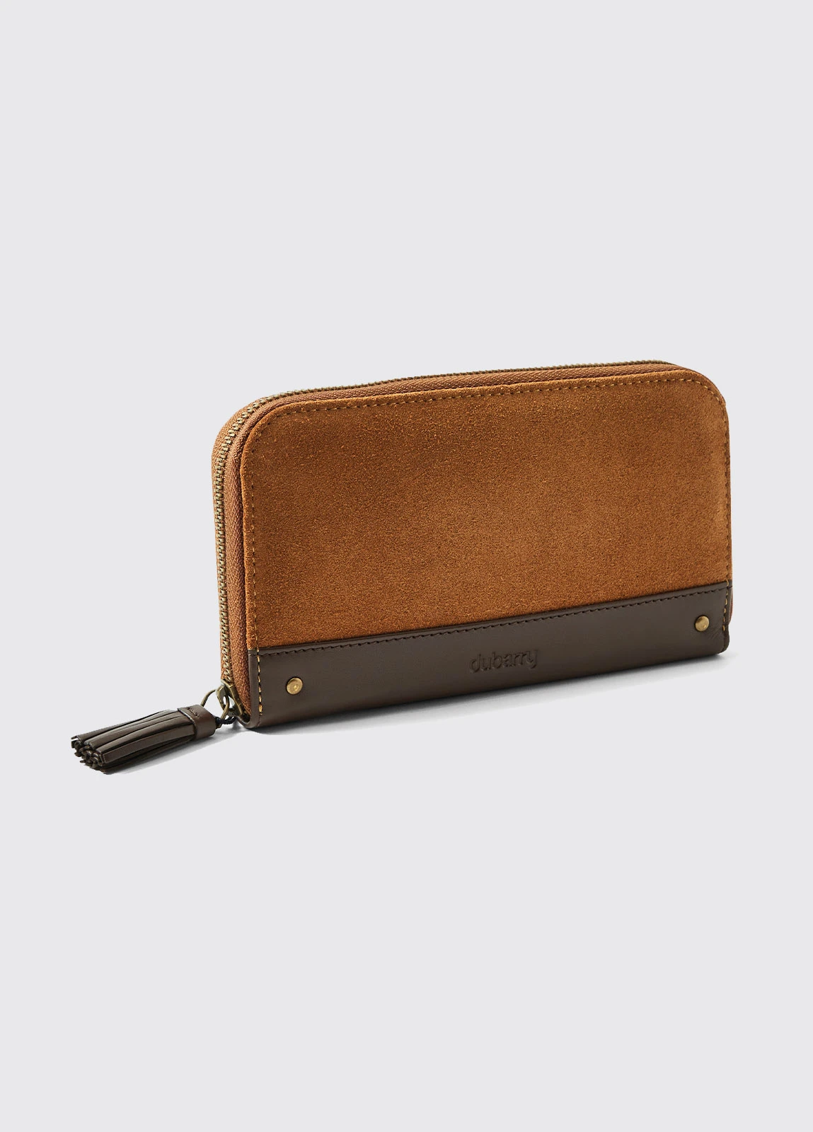 Made in superb quality suede and leather-trimmed, the Northbrook is a sleek purse, that compliments the Dubarry handbag and clothing range. RFID lined for security, it has a zipped coin pocket, note sleeve and credit card slots. A smart wallet to treat yourself to or great for a gift.