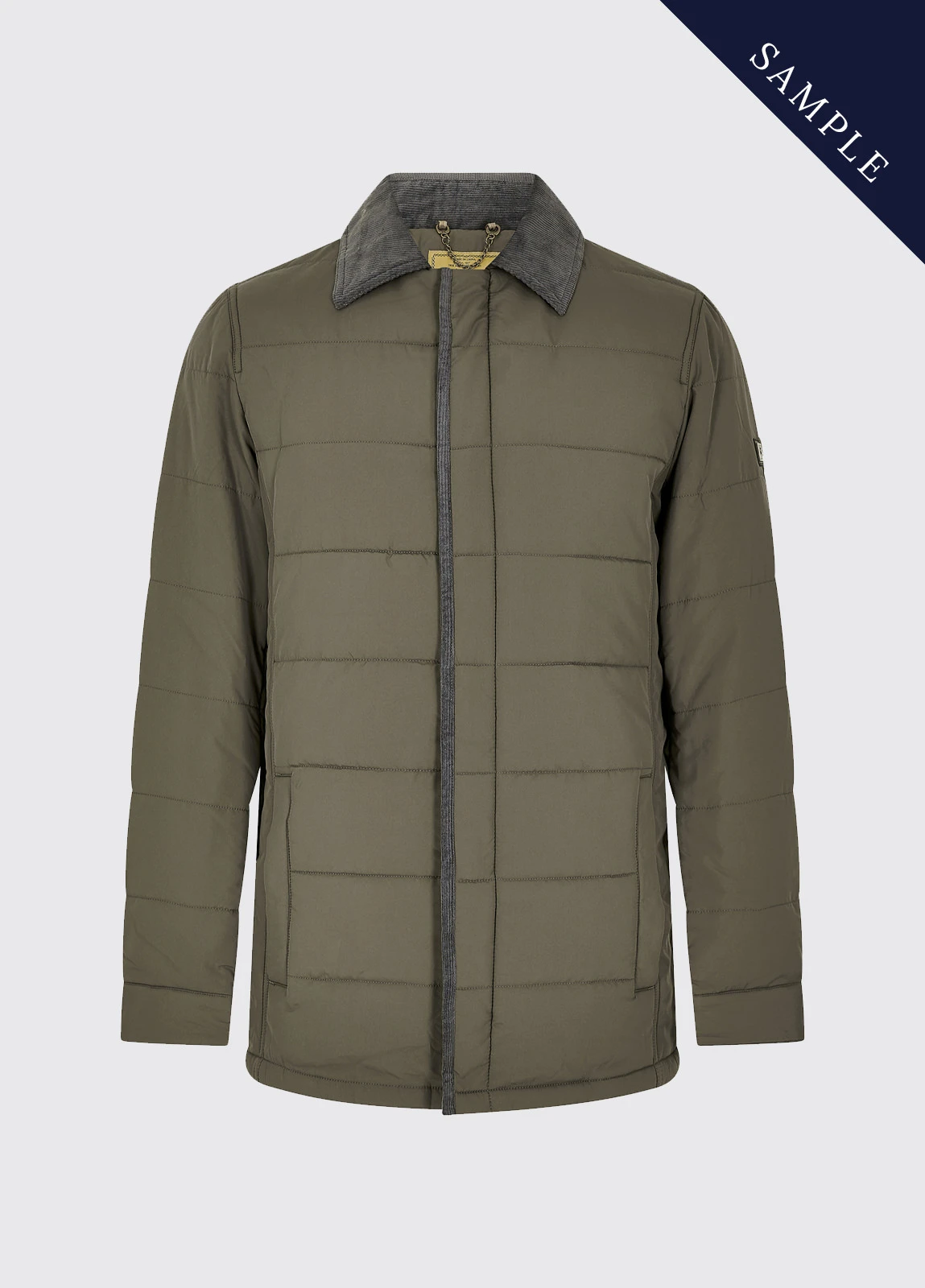 Men’s padded jacket with corduroy trim.
