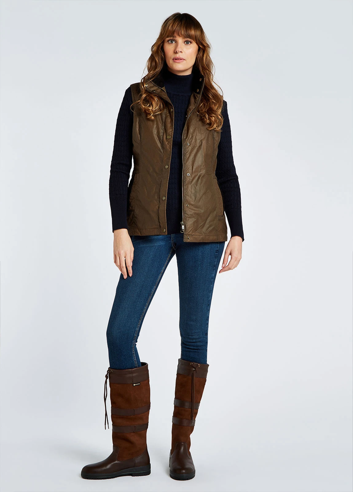 This high-collared ladies waxed cotton gilet features quilt detailing for a winter-warmer layer with a difference. Lined with a PrimaLoft®? filling, you can be sure to keep the punchy October breeze at bay without the need for excessive layers – a perfect addition to any winter wardrobe