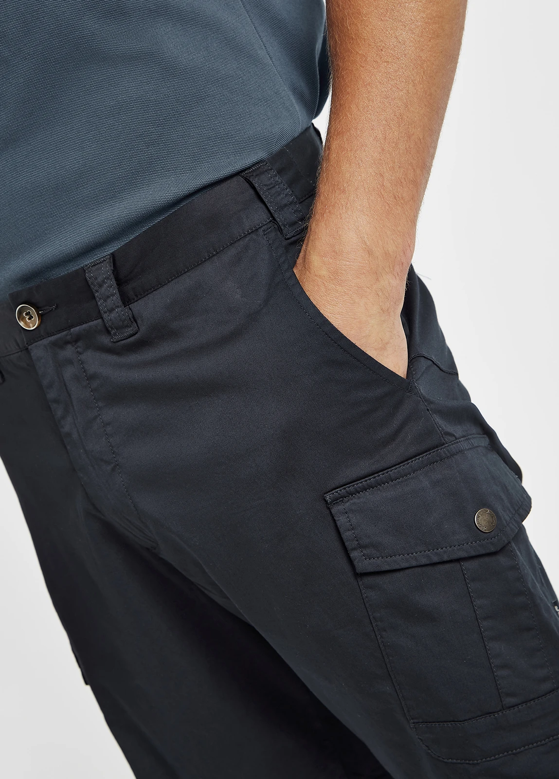 - Two front slash pockets, two cargo pockets with flaps and two back welt pockets