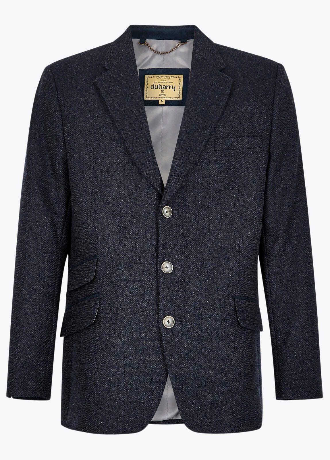 Tailored three-button men’s tweed jacket.